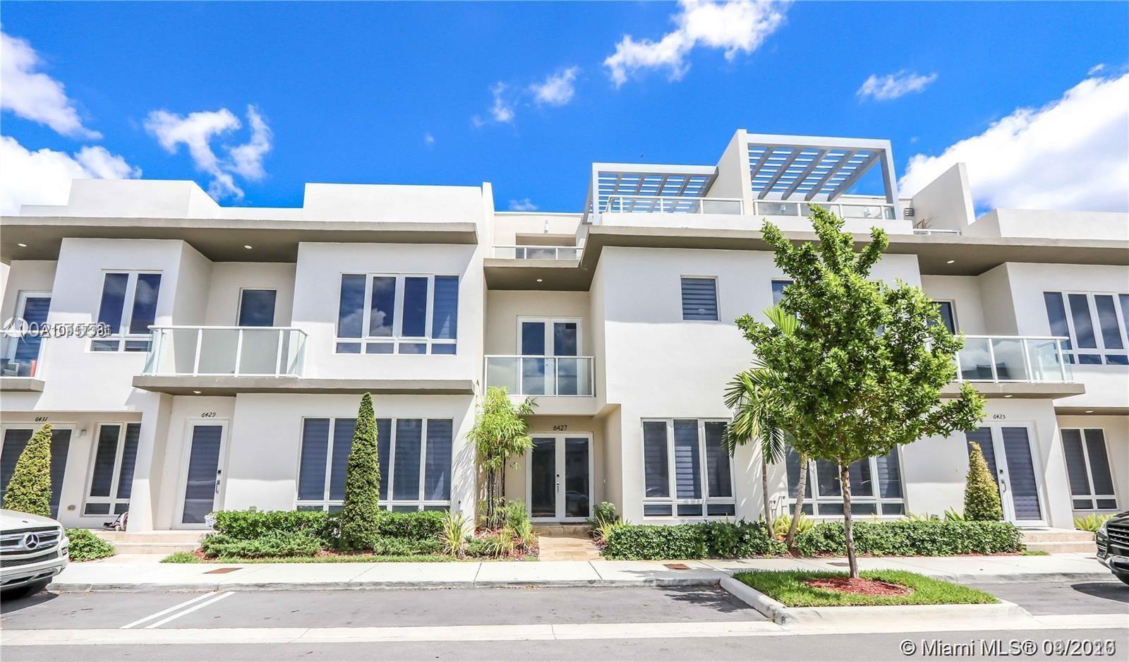 READY TO MOVE!! CONTEMPORARY ARCHITECTURE STYLE WITH 4 BEDROOMS/3 BATHS. 2- STORY TOWNHOUSE WITH WOOD FLOOR THROUGHOUT THE HOME, AND BLINDS OVER THE WINDOWS. 3 PARKING SPACES. SOCIAL AREAS ARE COMBINED INTO A UNIQUE OPEN LIVING SPACE. THE KITCHEN IS ALSO OPEN STYLE AND OFFERS STAINLESS STEEL APPLIANCES AND WHITE QUARTZ COUNTERTOP. THE UPSTAIRS FEATURE THE MASTER SUITE WITH A BALCONY, WALK-IN CLOSET, MASTER BATH, DUAL FLOATING VANITIES, AND A GLASS ENCLOSED SHOWER.... OWNER SPENT FULLY FURNISHED! OVER $100,000 IN UPGRADES. FINISHED ROOF TOP TERRACE, 1 SUMMER KITCHEN... CLOSE TO THE NEW AND BEAUTIFUL DORAL COMMONS PLAZA THAT INCLUDES PUBLIX AND SHOPS. IN VERY CLOSE PROXIMITY TO FLORIDA'S TURNPIKE AND THE PALMETTO EXPRESSWAY.