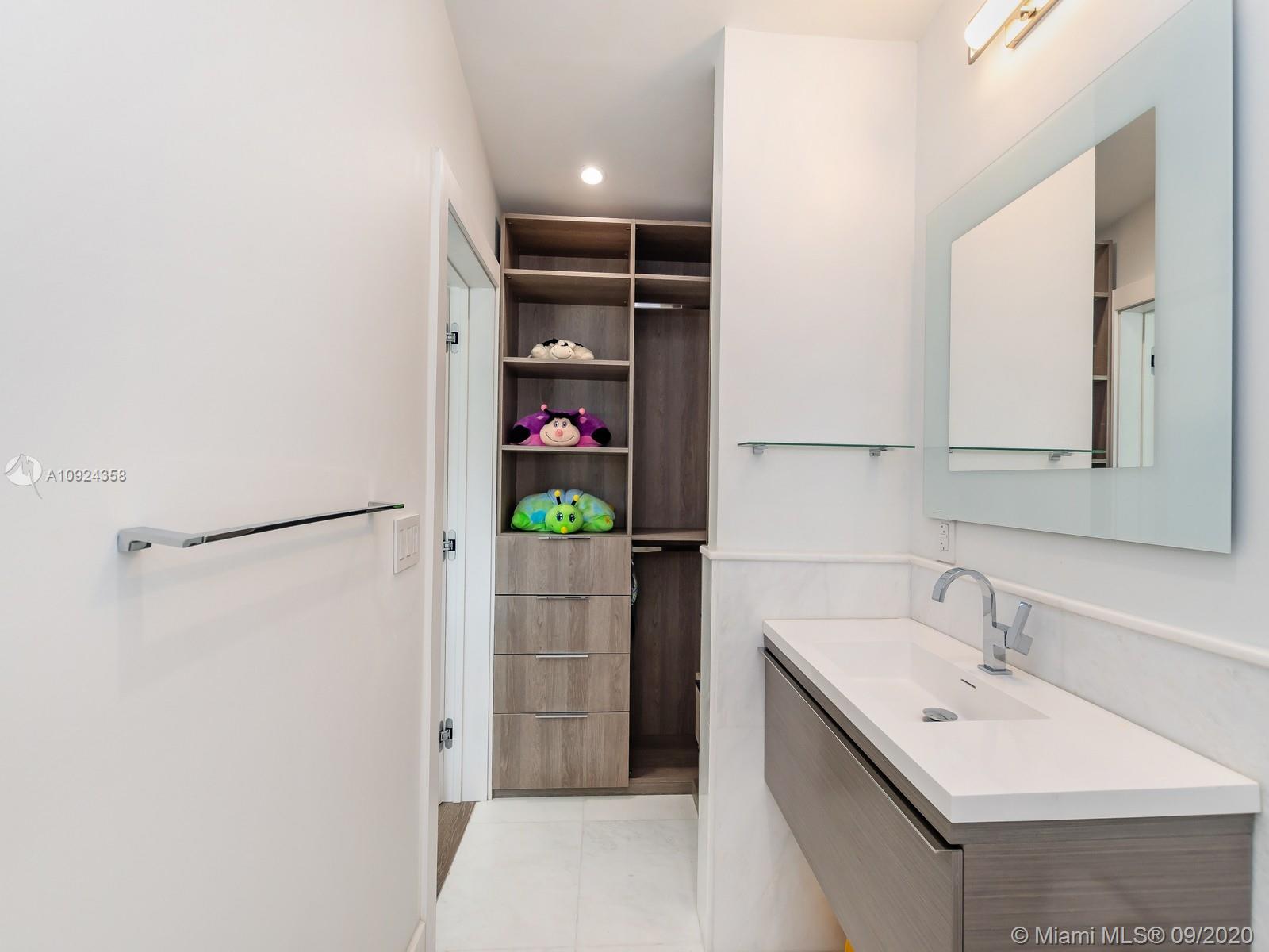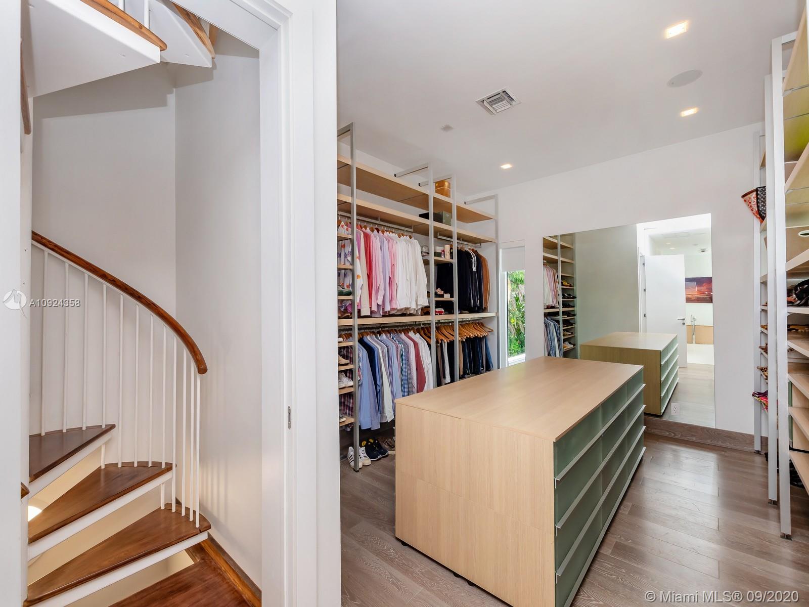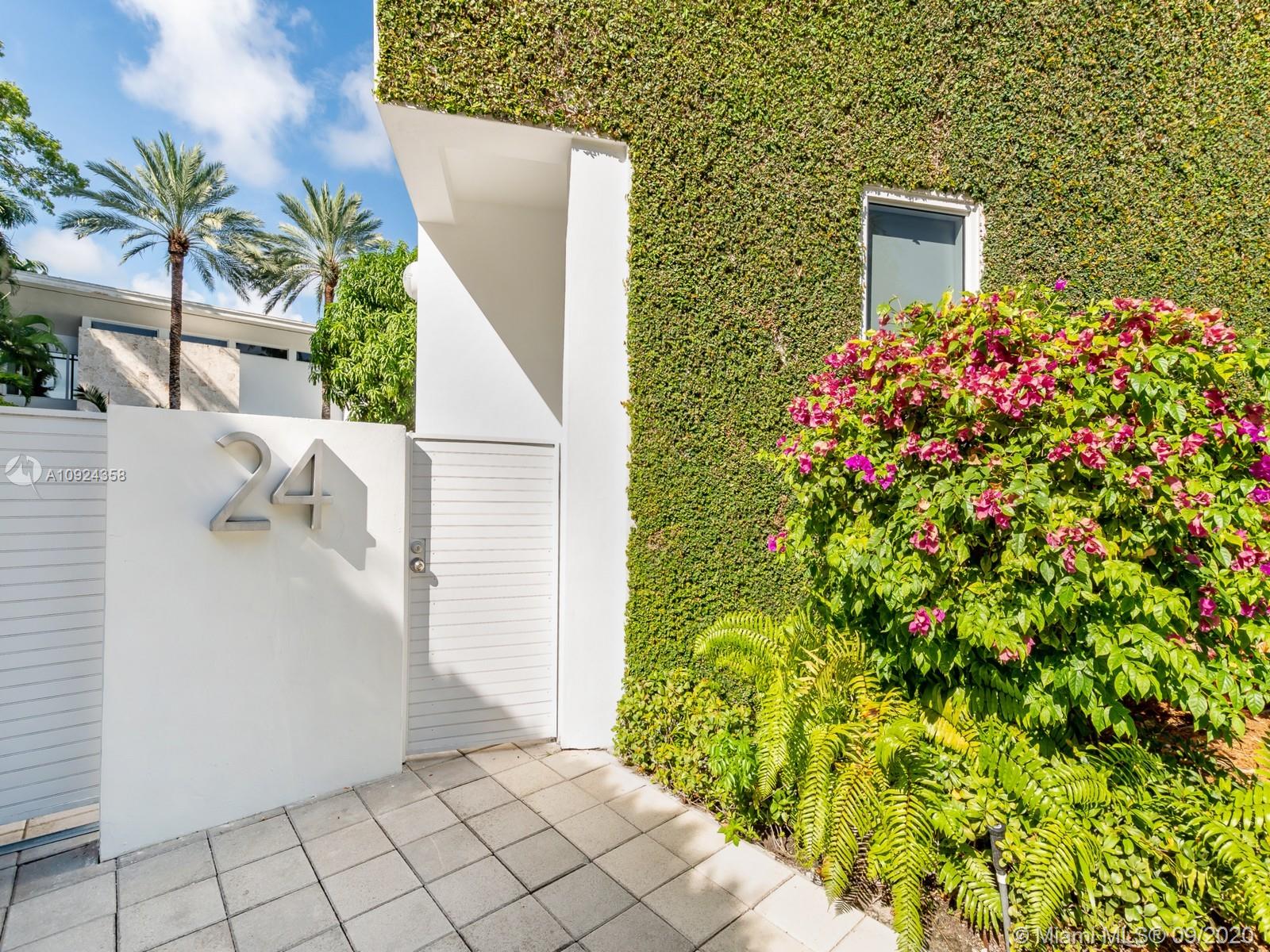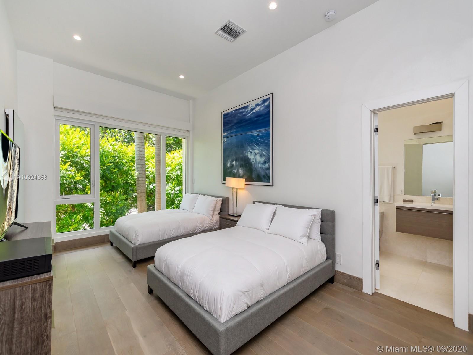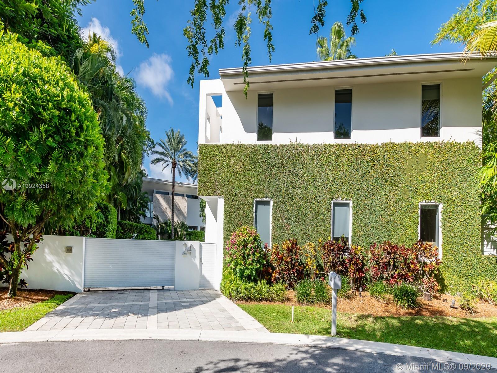 This stunning gated WATERFRONT 2-story MODERN home+guest house on guard-gated Palm Island lies on an expansive 27,500 SF LOT w/100’of waterfront which overlooks Biscayne bay&the Miami skyline.Home offers 7 bed+7.5 bath,impact windows throughout,open spaces through the formal living rm&dining rm w/double height ceilings,updtd kitchen w/subzero&wolf appliances,3 beds w/ensuite bths,family room+views of the outside area which features a large edge pool+summer kitchen.Stairs to the master suite,w/private terrace.Separate 2 story guest home features 3 full beds w/ensuite baths as well as an additional room&laundry space.4 car grg+additional parking space inside.Palm Island has new landscape plan&features 24/7security,park,lighted tennis courts&more, the ideal location for a family!