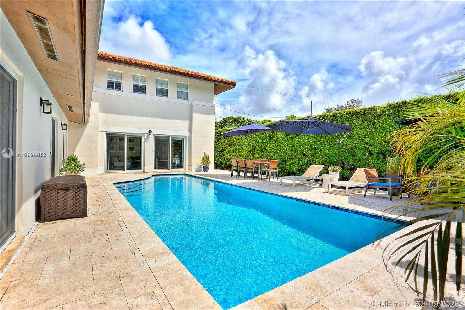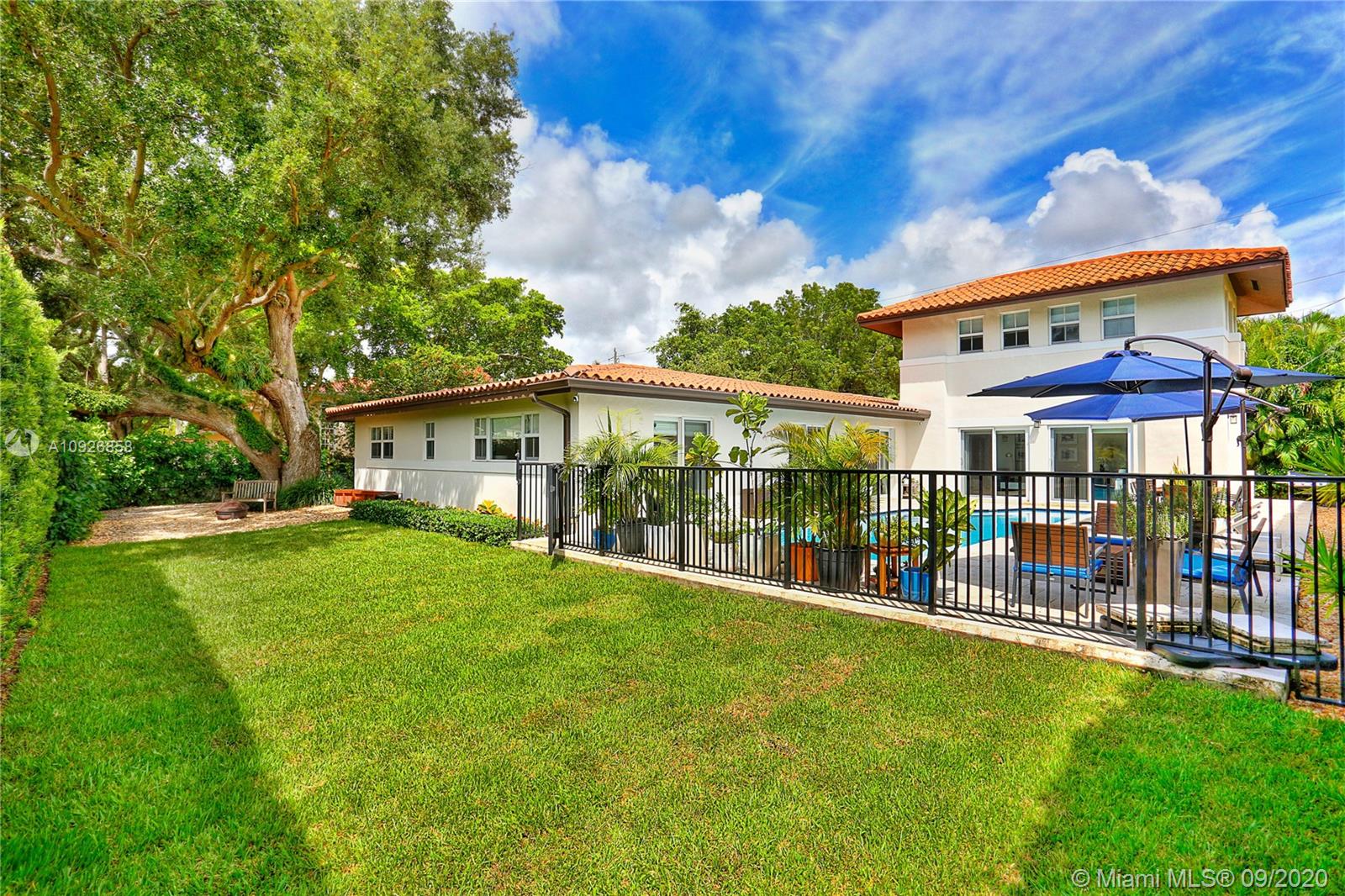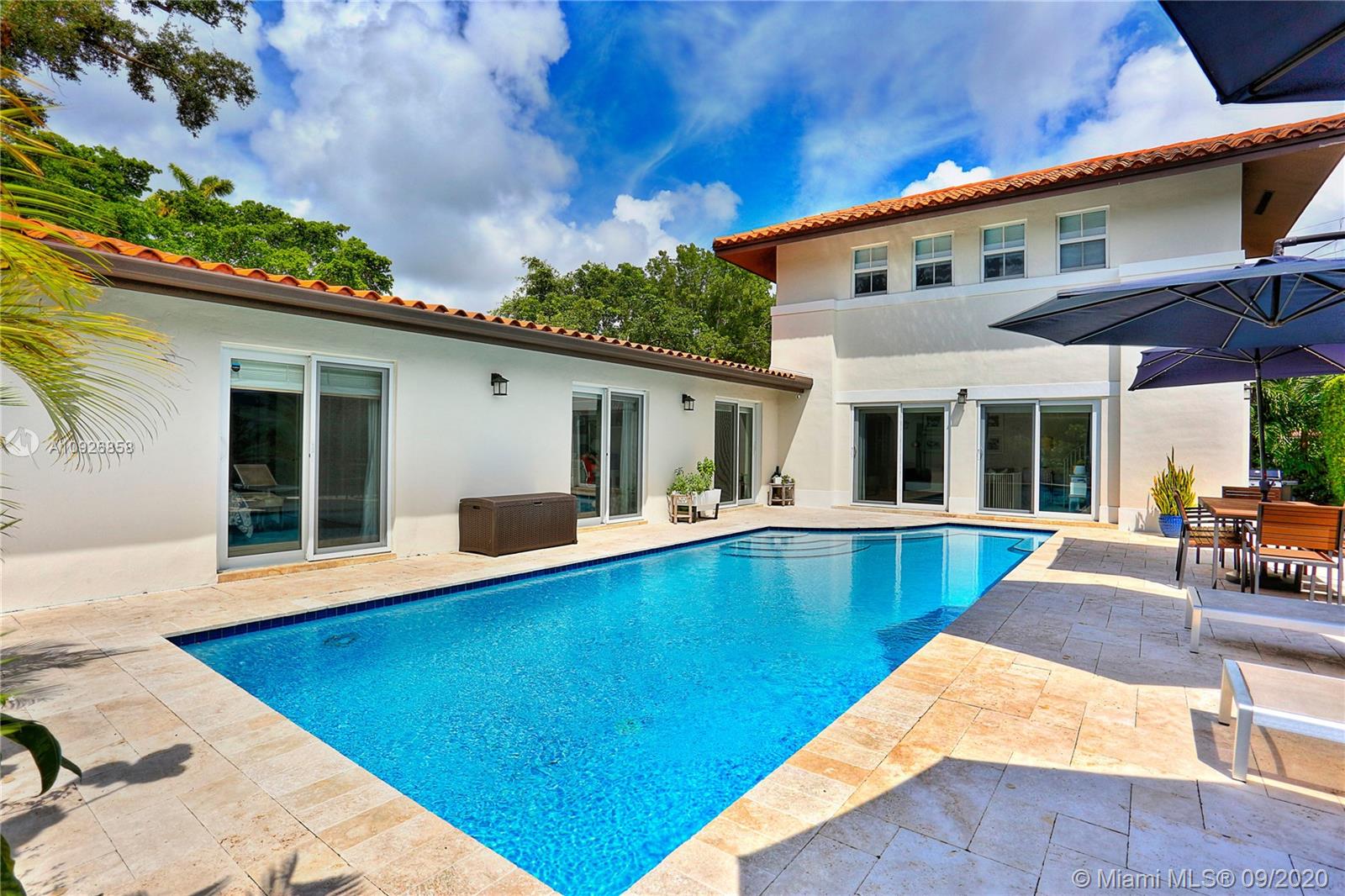 This 5 BR, 4 BA, 2977 adj SF gem has been beautifully updated! Foyer entry leads to a spacious, open floorplan filled w/ natural light featuring formal liv & din rms, beautiful kitchen w/ island, abundant storage, & new, high-end appliances, plus large family room overlooking the pool & patio. The split BR plan features the first-floor master bedroom w/ marble bathroom plus two add’l BR’s & BA’s on one side, in-law’s suite with private entrance, & 2nd-floor bedroom on the opposite side. Recent updates incl renovated bathrooms, new hot/cold water lines, impact windows & doors, redone saltwater pool & patio, security system, & more. Lush, private walled & fenced pool & yard will make you feel like you’re on vacation without leaving home. Spacious 2-car gar & more in best Gables location!