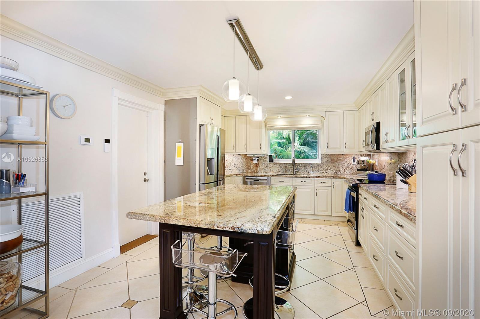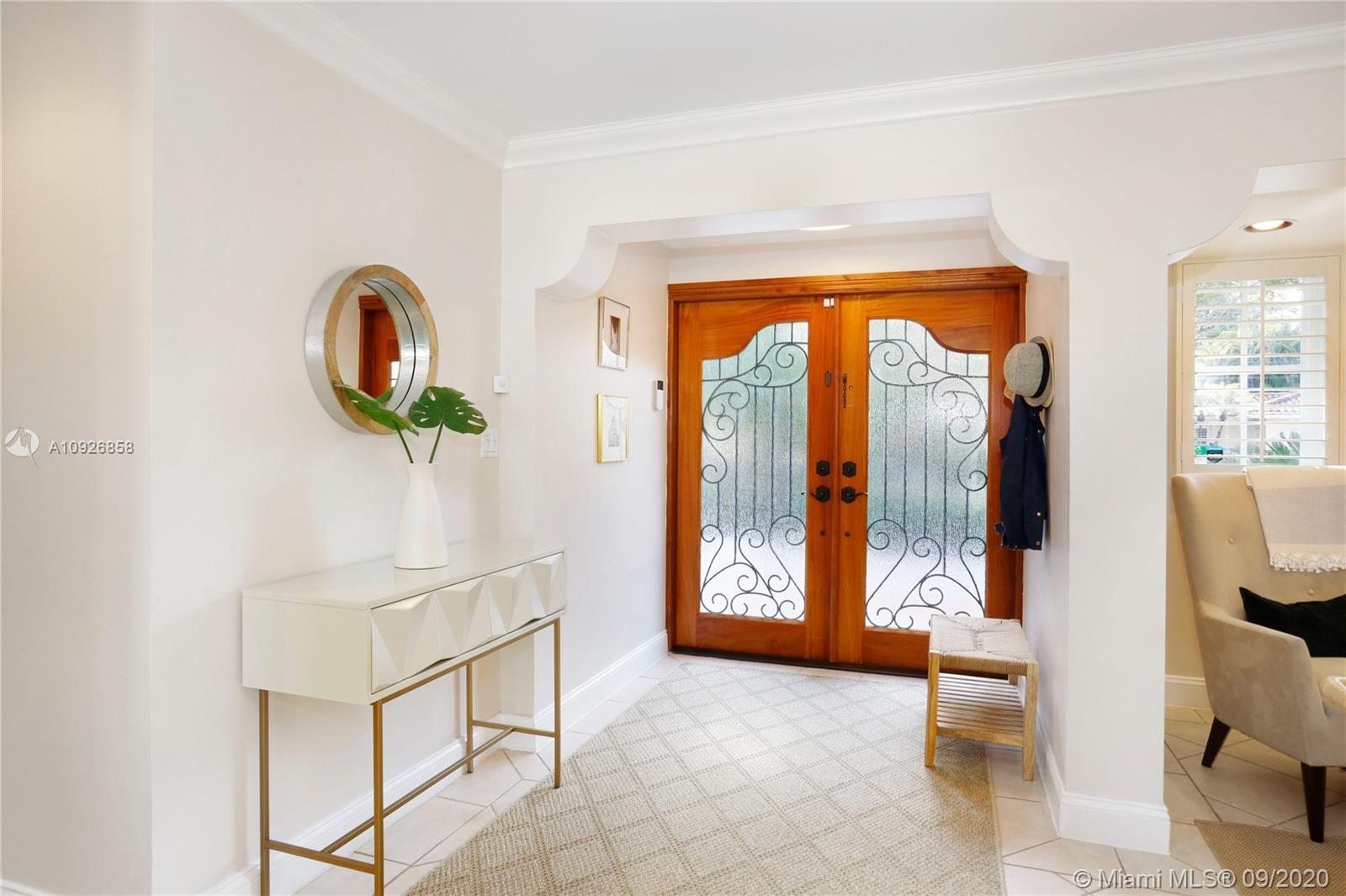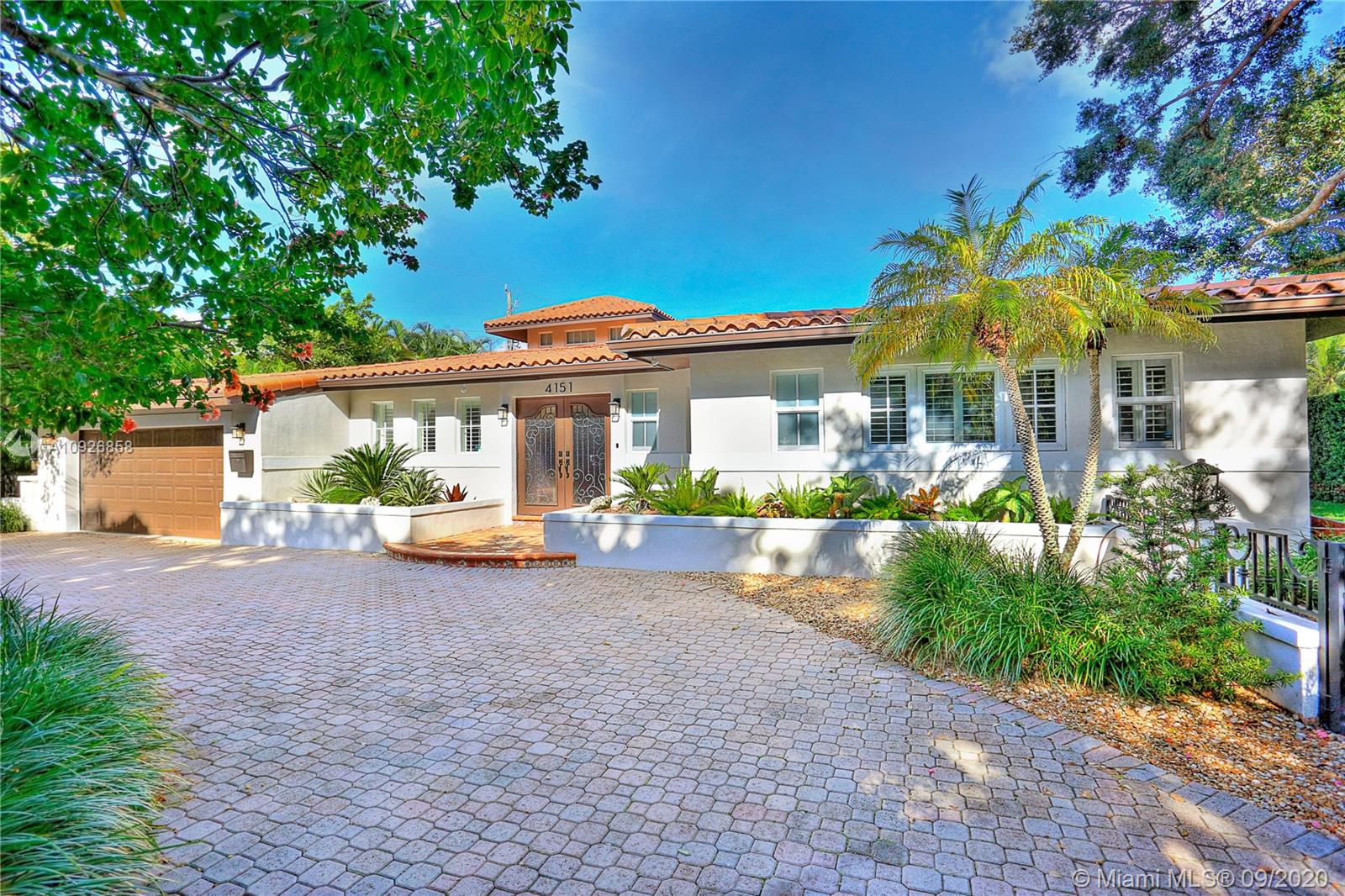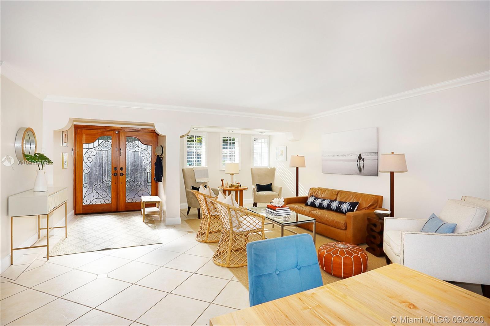 This 5 BR, 4 BA, 2977 adj SF gem has been beautifully updated! Foyer entry leads to a spacious, open floorplan filled w/ natural light featuring formal liv & din rms, beautiful kitchen w/ island, abundant storage, & new, high-end appliances, plus large family room overlooking the pool & patio. The split BR plan features the first-floor master bedroom w/ marble bathroom plus two add’l BR’s & BA’s on one side, in-law’s suite with private entrance, & 2nd-floor bedroom on the opposite side. Recent updates incl renovated bathrooms, new hot/cold water lines, impact windows & doors, redone saltwater pool & patio, security system, & more. Lush, private walled & fenced pool & yard will make you feel like you’re on vacation without leaving home. Spacious 2-car gar & more in best Gables location!