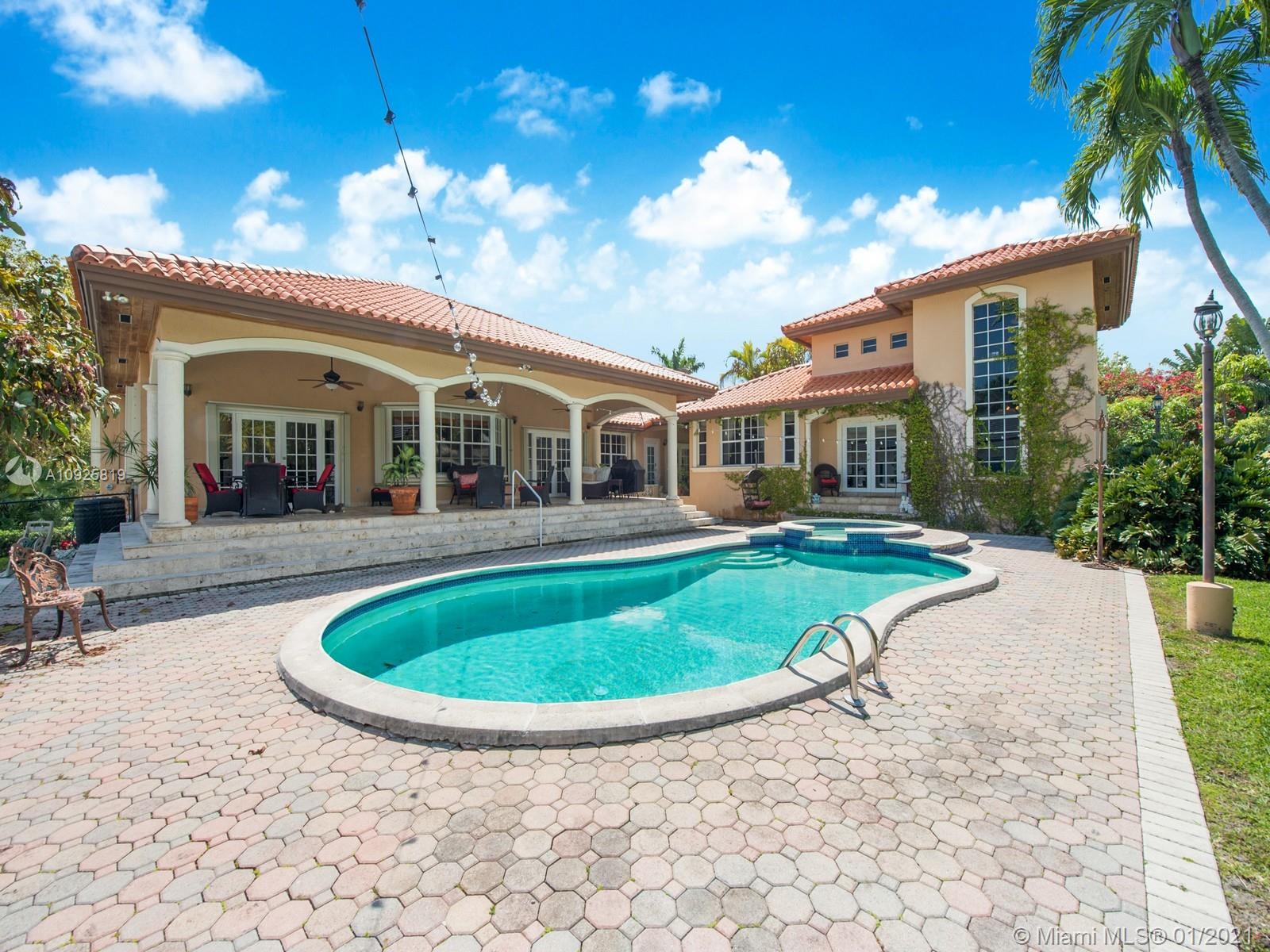 Tucked away in the exclusive gated waterfront community of Cocoplum, conveniently close to Coral Gables, South Miami, Coconut Grove, and Biscayne Bay, this spacious contemporary Mediterranean-style home was built in 1996 for elegance an comfort. Set on a lushly landscaped 16,988 sf lot-the 5-bed/4.5-bath open layout home boasts an impressive entry foyer, large formal living room, an updated kitchen with stainless steel appliances, and formal dining room all ideal for entertaining. Outside, the beautiful backyard includes a lovely swimming pool as well as a two-story guest house/in-law suite with bar, full bath, and upstairs bedroom. Additional extras include a two-car garage, separate laundry room, and great central community location across from the tennis and volleyball courts.