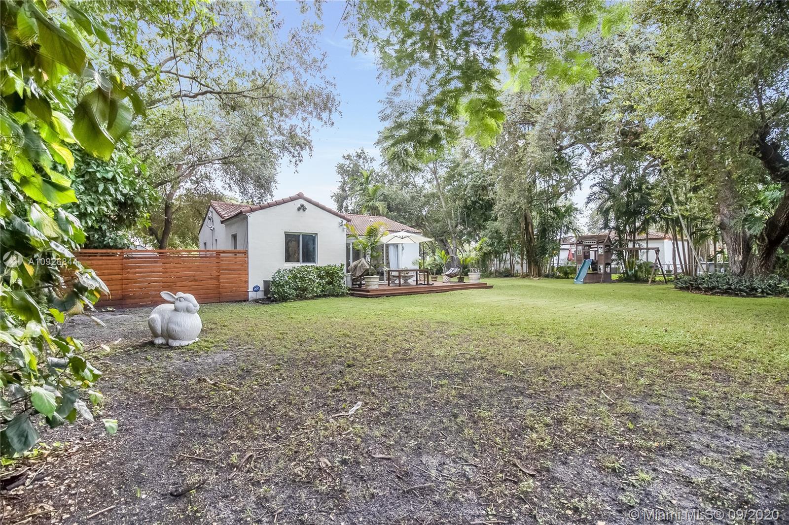 Charming 2 Bed 1 Bath home in the walkable & historic Miami Shores neighborhood. This is one of the largest lots for sale in Miami Shores priced under 500k and if you are looking for plenty of space for the kids, pets, or even to plant whatever fruit trees your heart desires, this home is for you. This property features an open kitchen with new floor and hardwood floors throughout. This backyard is great for a BBQ, entertaining, or just relaxing and enjoying the breeze while overlooking the scenic trees. The A/C is 1 year old.This home is conveniently located close to great shopping, plenty of dining options, and I-95.