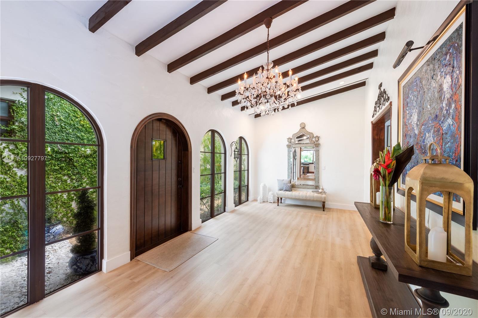 Step inside this hidden gem on Alton Road 4 beds 3.5 baths overflowing with charm and turnkey home! Bright and open entry way, all impact windows throughout the house, double height living room with vaulted ceilings and spacious master with high ceilings. Fully renovated kitchen and warm dining room featuring Pecky Cypress wood ceiling. Private outdoor kitchen featuring bbq, refrigerator, turf seating area, and outdoor shower perfect for entertainment. This home is full of character, lush landscaping throughout and garden entry way. Central location a block from the bay, close to restaurants, shops, houses of worship & the beach!