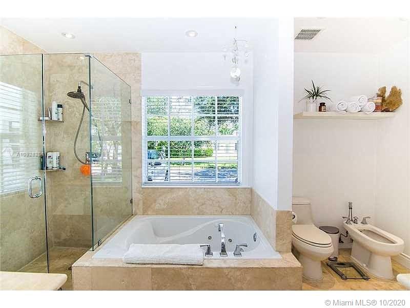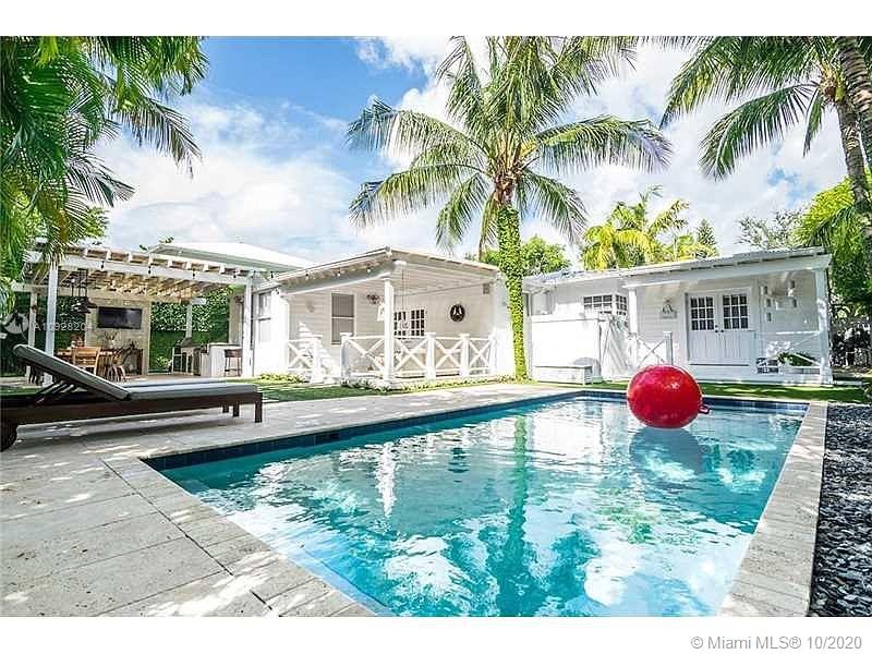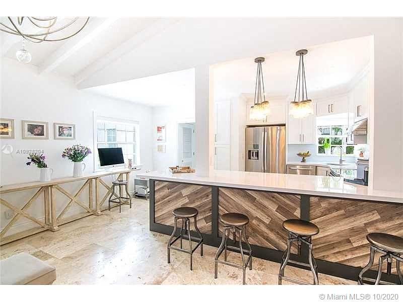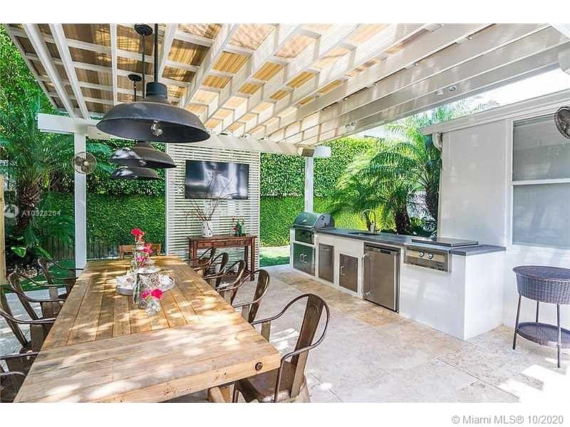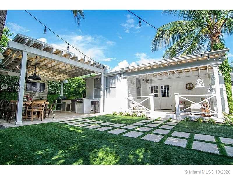 Fall in love with this beautiful home with vaulted ceiling, remodeled with extremely good taste and attention to every detail. The split floor plan offers 2 large BR on one side (one can be split into a BR and a Den with skylight) plus 2 Full Baths. On the other side gorgeous master bedroom (with his and hers walk in closet) that opens to a cozy terrace and pool area. The amazing outdoor space includes a new pergola with a fabulous outdoor kitchen with premium appliances including new barbecue, refrigerator and Alfresco power burner. Perfect outdoor layout with the pool on one side and a great open space with artificial grass makes this home ideal to entertain. Manicured landscape provides full privacy. Modern aluminum roof, already connected to sewer and bonus storage room.