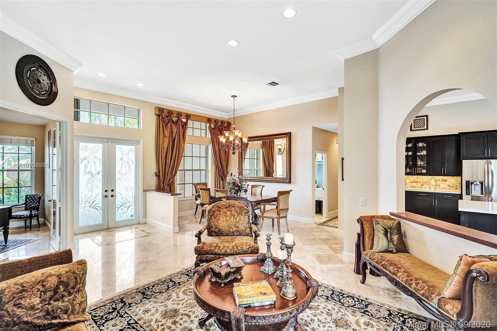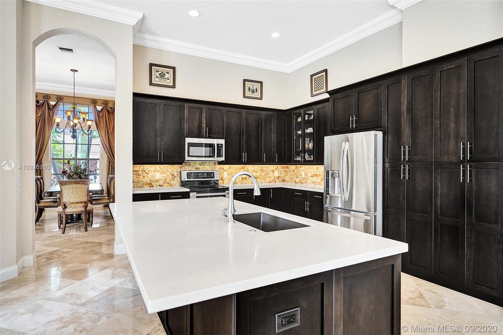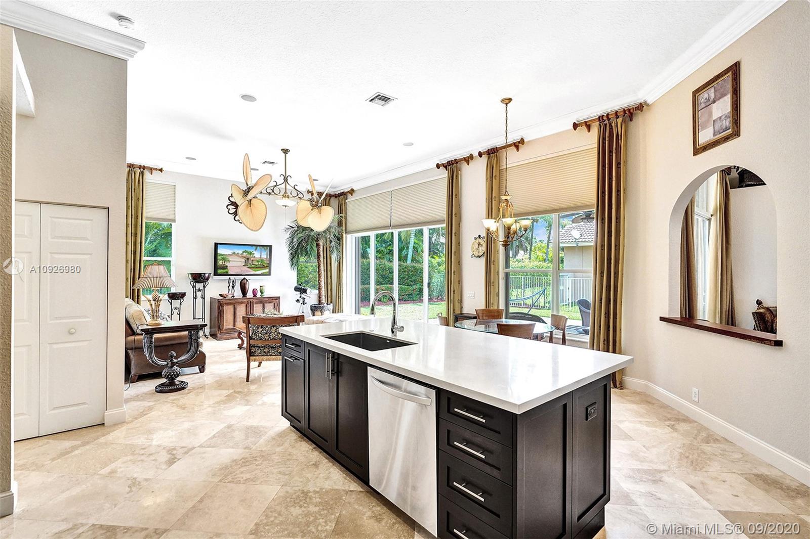 Meticulously maintained and updated five-bedroom, three-bath home in Weston Hills Country Club. The center of the home is punctuated by a completely renovated kitchen with tall wood cabinets, massive eat-in island, silgranit sink, Caesarstone quartz countertops, stainless steel appliances, and onyx backsplash. Open floor plan with sightlines throughout the house. Marble and wood floors, custom closets in every room, built-in surround sound speakers, a large and private backyard for entertaining, Hunter Douglas Duette blinds, epoxy garage floor, and painstaking attention to detail make this house a rare find and a perfect home.