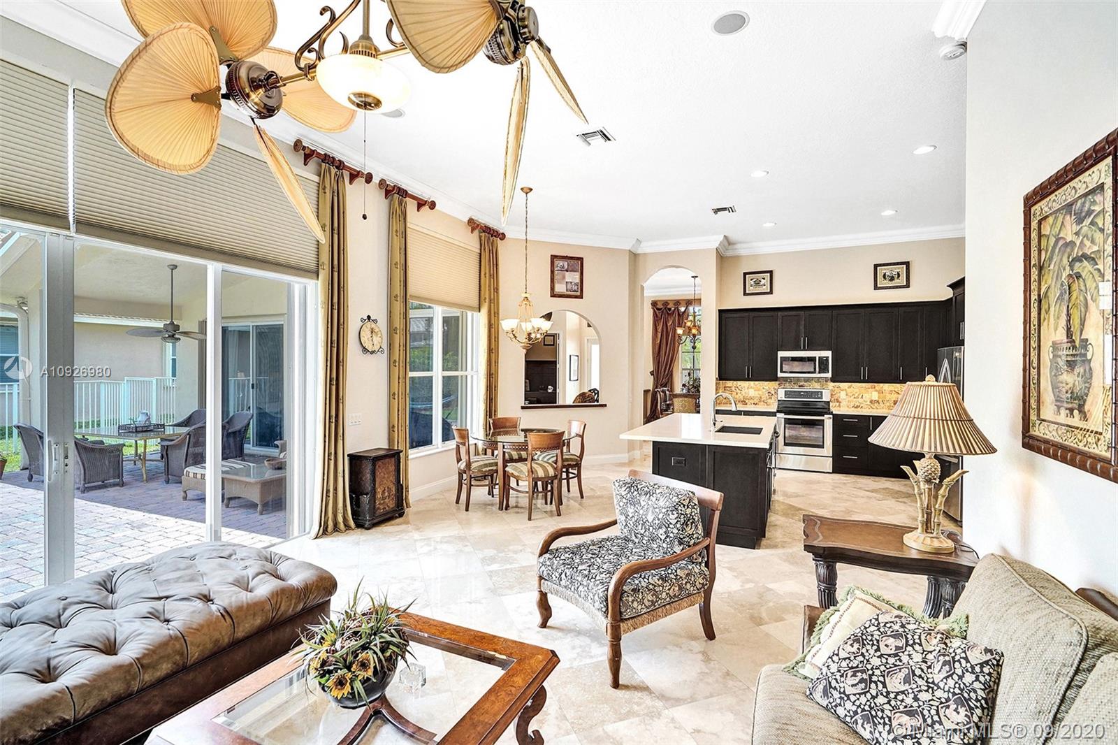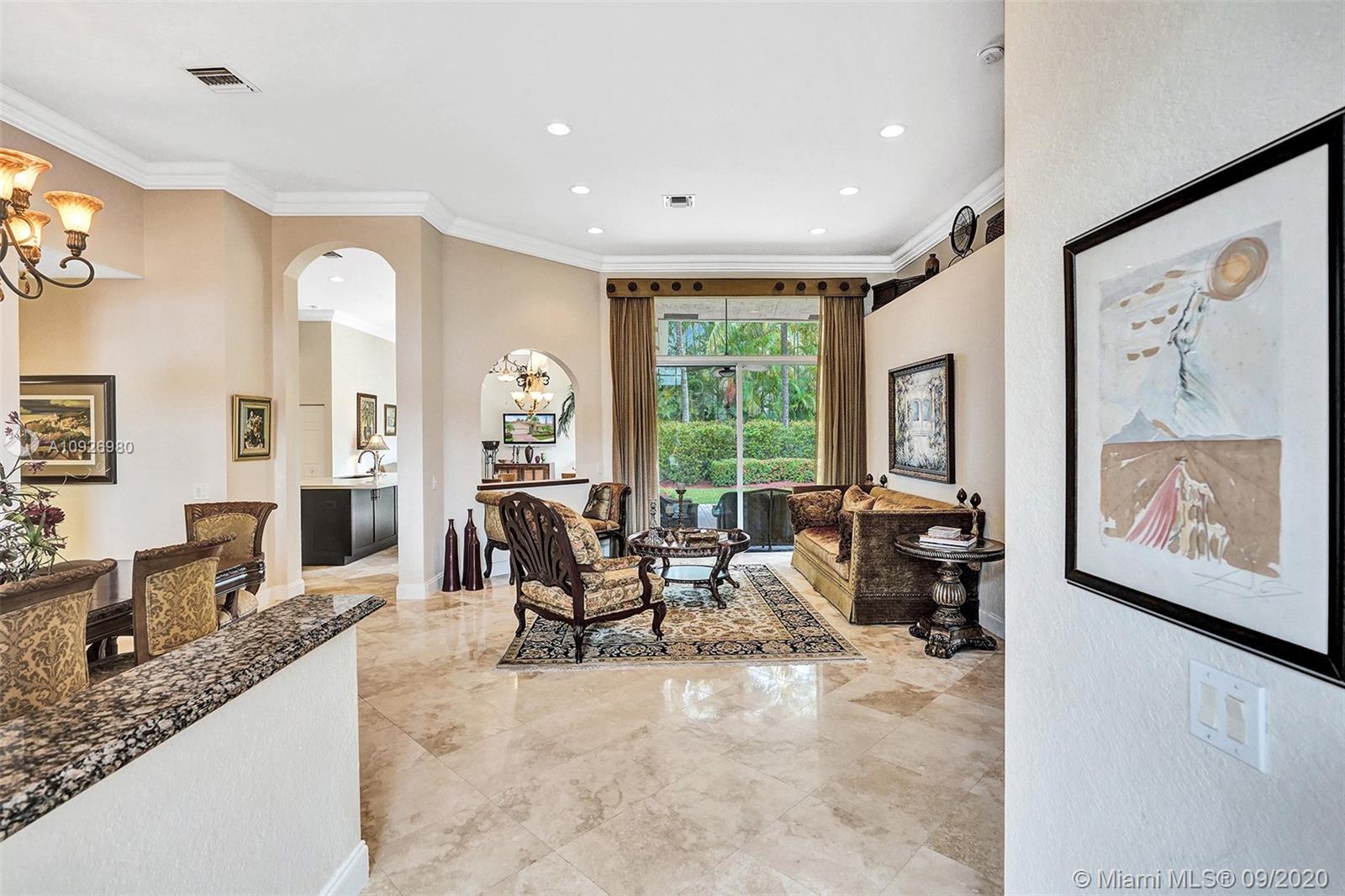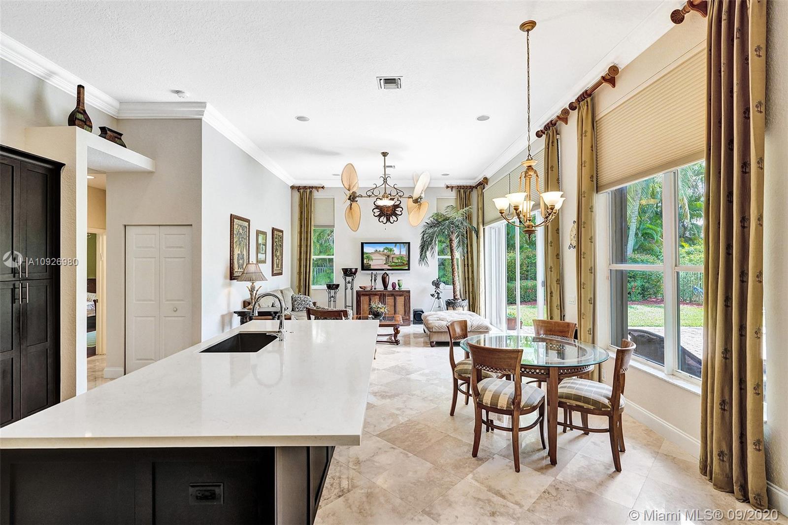 Meticulously maintained and updated five-bedroom, three-bath home in Weston Hills Country Club. The center of the home is punctuated by a completely renovated kitchen with tall wood cabinets, massive eat-in island, silgranit sink, Caesarstone quartz countertops, stainless steel appliances, and onyx backsplash. Open floor plan with sightlines throughout the house. Marble and wood floors, custom closets in every room, built-in surround sound speakers, a large and private backyard for entertaining, Hunter Douglas Duette blinds, epoxy garage floor, and painstaking attention to detail make this house a rare find and a perfect home.