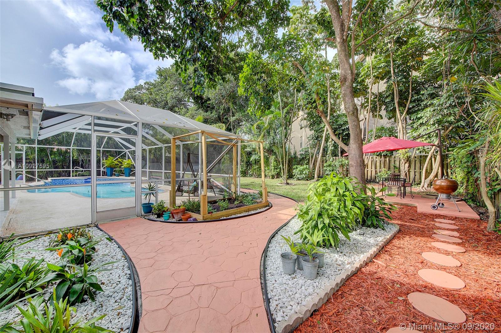 Lush and peaceful tropical back yard pool oasis awaits! Renovated 4/2 home with a split floor plan in highly sought after Oak Knoll II, surrounded by the Pine Island Ridge nature trails and parks. Completely open floor plan with a beautiful Calacatta quartz island in the kitchen, new ceramic flooring, vaulted high ceilings, impact doors and windows throughout and updated bathrooms. In 2020, the pool was resurfaced and installed new A/C system. The HOA fee includes membership to the Pine Island Country Club (golf, tennis & basketball courts, gym, pool, and two restaurants). A-rated school district. Nearby shopping, FLL Airport, Nova Southeastern University & Broward College. Showings by appointment.
