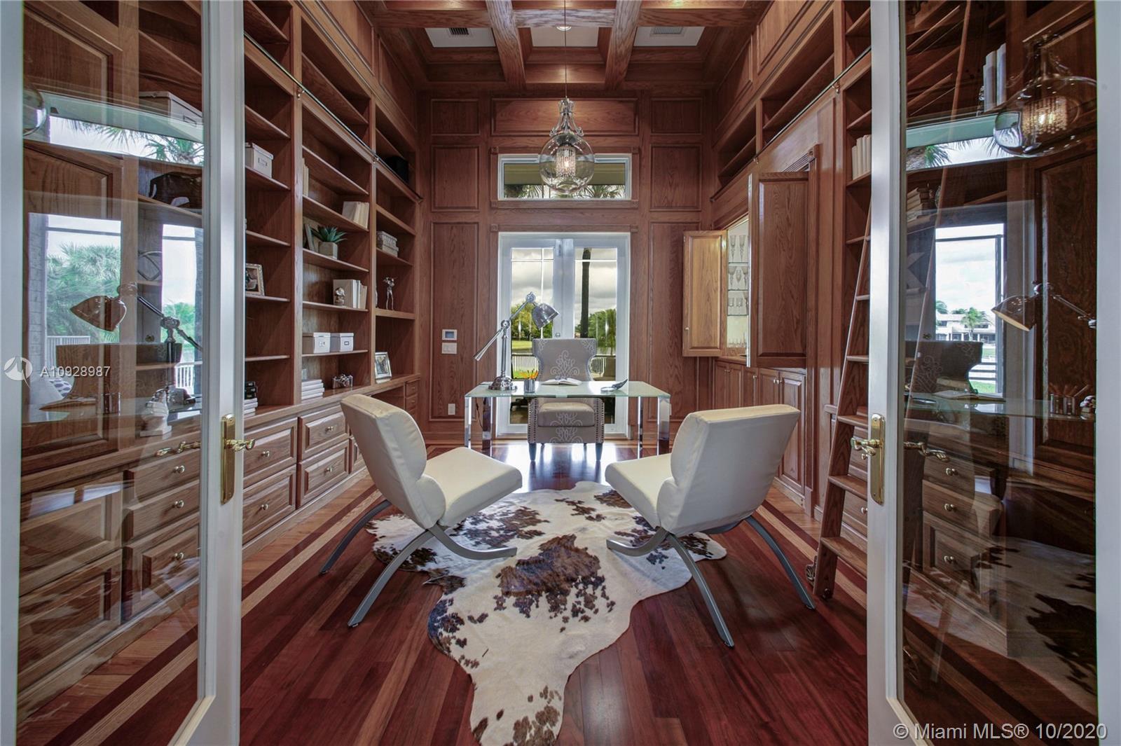 SPECTACULAR LAKEFRONT custom estate offering transitional modern living with luxury & privacy in the prestigious Windmill Ranch Estates! Featuring over 12,000 total sq ft including 2,000+ sq ft of covered entertainment terrace. 5 bedrooms including a guest suite with private entrance, two story master with marble bath, office, library, exercise room, loft, 6 full baths & 2 half-baths. Gourmet kitchen with state-of the-art appliances, built-in aquarium & wine cellar. Expansive screened patio complete with teak outdoor summer kitchen overlooking panoramic lake views. This meticulously maintained home is ideal for entertaining on a grand scale! In addition - 4 car garage, NEW ROOF and IMPACT WINDOWS!