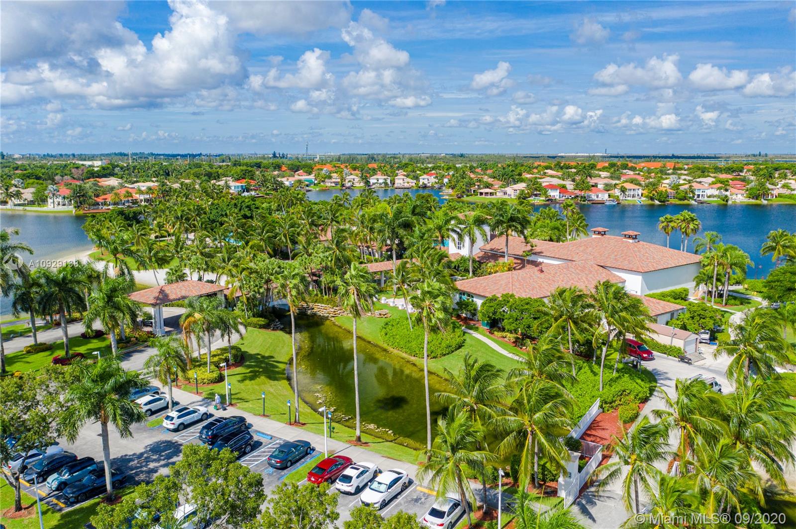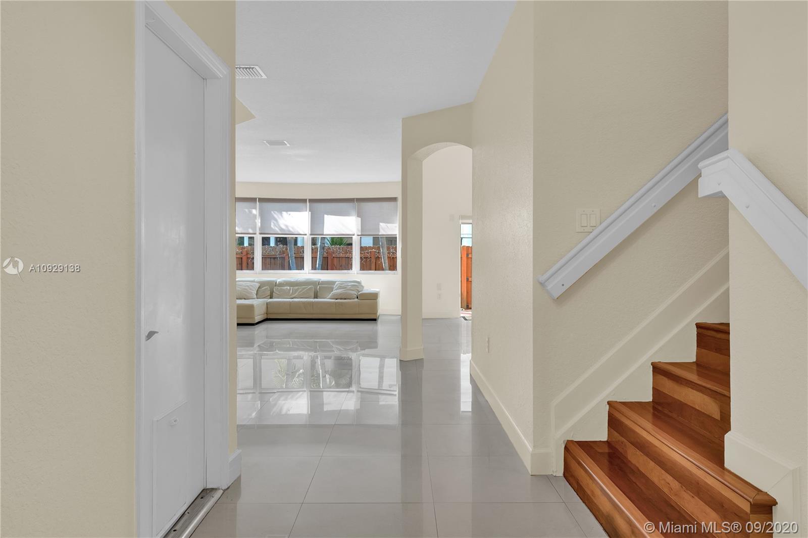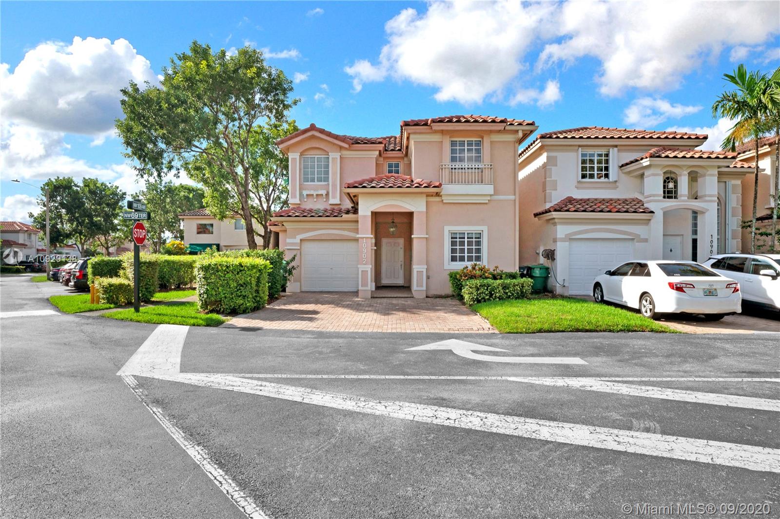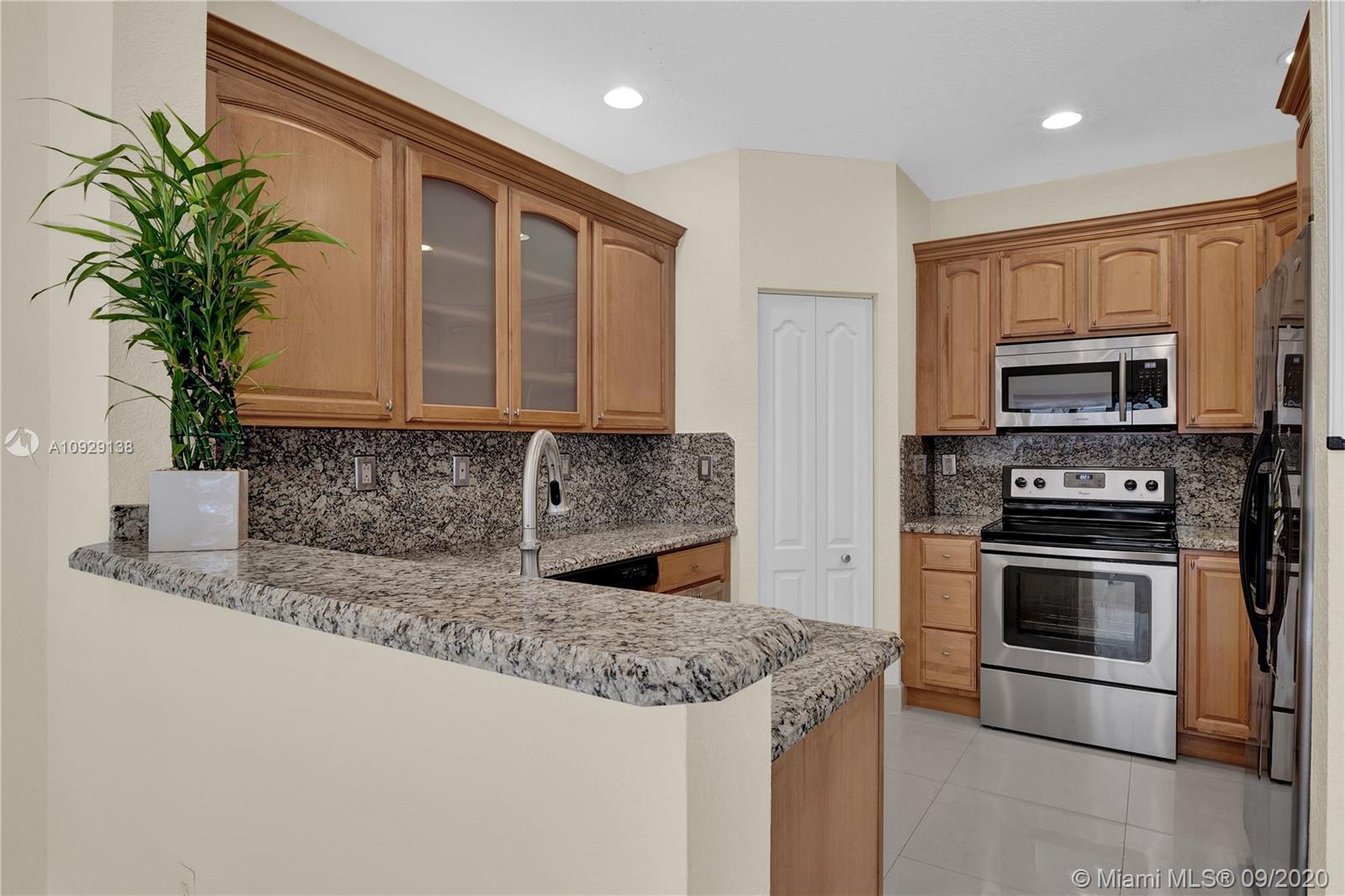 Beautiful Corner Cluster-Home in the desirable Doral Isles gated-community. Spacious and Bright layout plan with 3 Beds, 3 Baths and 1 Den (could be another bedroom); 1 of the Bedrooms and 1 Bathroom are located downstairs; open renovated Kitchen, custom-made hardwood cabinetry with granite counter-tops and SS Appliances. Enjoy the renovated Patio with family and friends while enjoying the Argentinean Gas Powered Stone Barbecue Grill. The garage has been converted and has an extra Fridge for additional cooling storage. This house has Complete Impact Windows (high resistance with sun reflective and sun guard protection). 4 Tons AC with Air Purification system, 4" Meva Filter, Triple UV light sanitation and Electrostatic Particle Retention. Doral Isles offers resort-like amenities. MUST SEE.