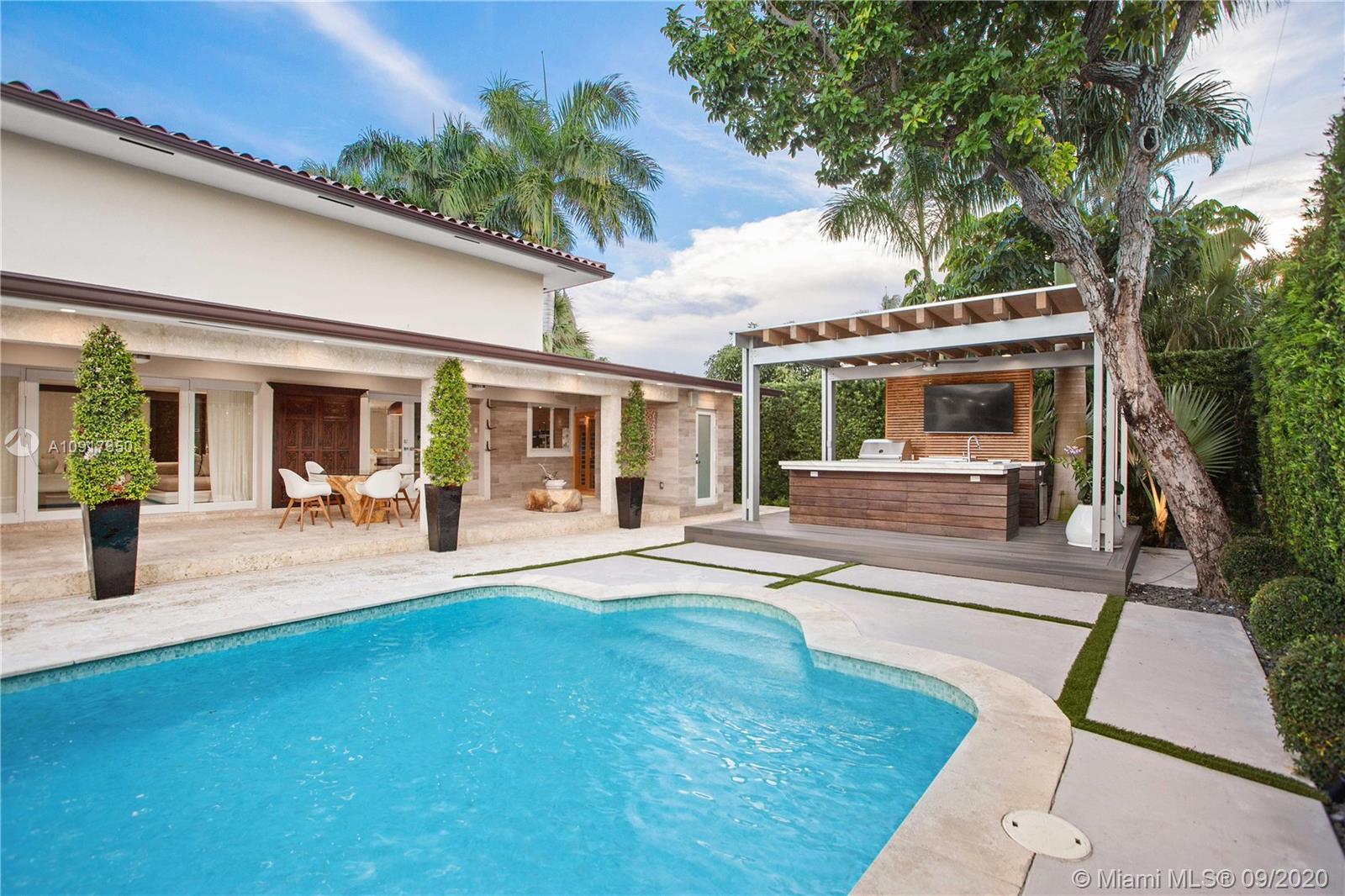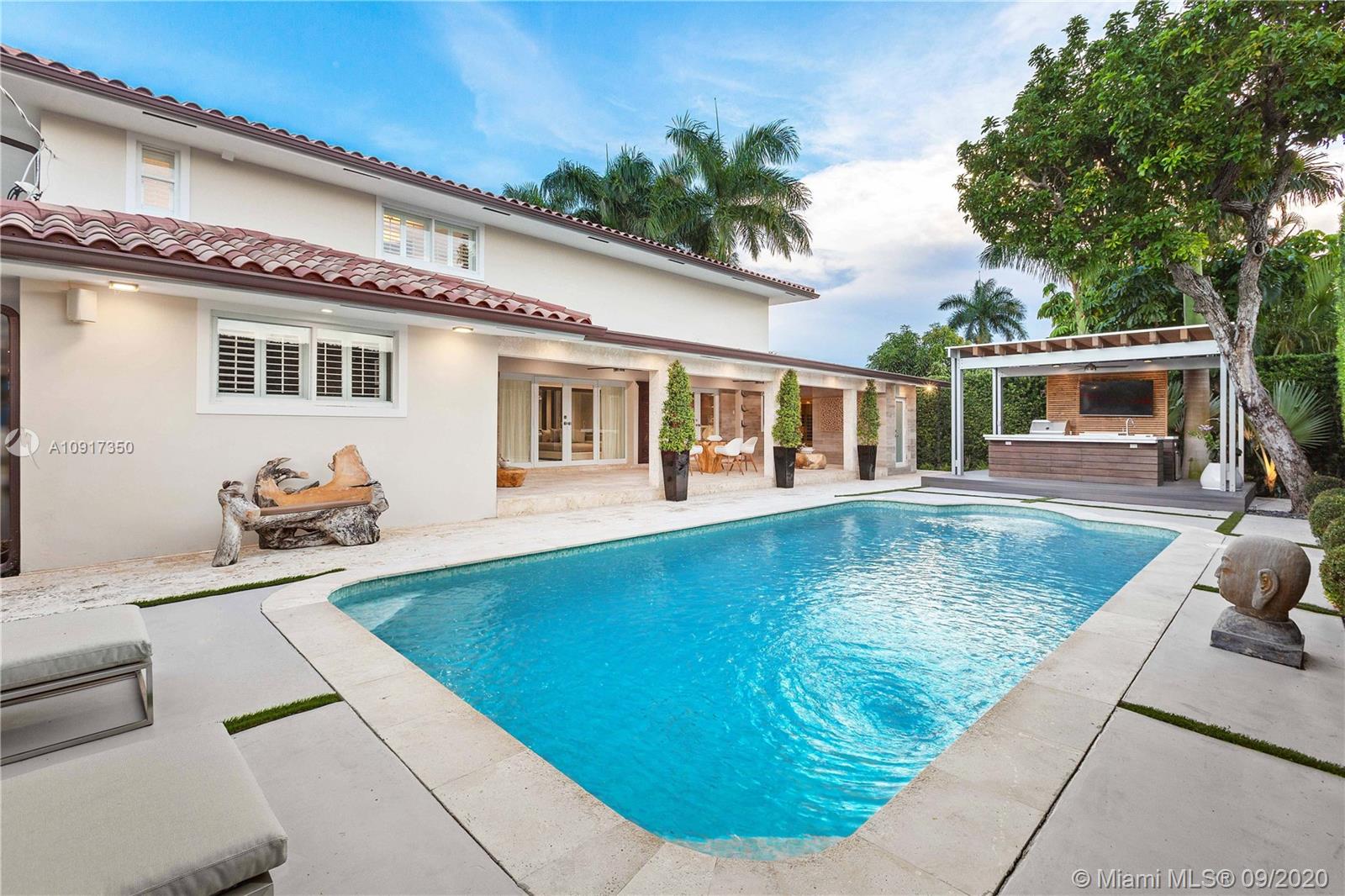 This home is truly spectacular. No expense was spared in remodeling this amazing 5-bedroom, 4.5-bath luxury home in Balharbor. Beautiful finishes throughout, rich hardwood, backlit Onyx, ceramic tiles and glass. Fabulous master suite with luxurious closet and dressing room, like in "Sex and The City," amazing bathroom with steam shower. Main bedrooms have en-suite bathrooms. Impact windows and doors, LED lighting, security cameras, and much more. Office, finished garage playroom, office with wet-bar, clear glass wine cellar, Miele appliances, built in coffee maker and gas stove. Laundry, pantry and maids room. Summer kitchen, salt water heated pool, sauna, outdoor shower, covered patio an mosquito misting system. All professionally fenced and landscaped. This home is a Work of Art.