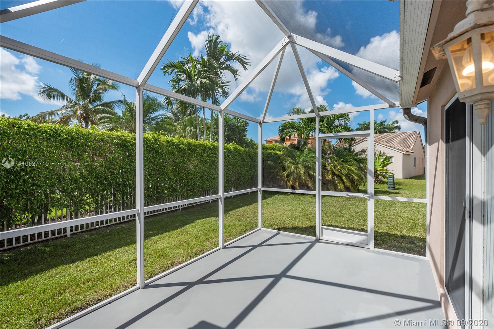 Immaculate! 3-bedroom, 2-bath, home located on a large lot with plenty of room for a pool. Home features: fresh paint, Race Deck flooring in the garage, New screens, in-ceiling surround home theater with sub-woofer, refinished tubs and kitchen sink, newer washer and dryer, new, laundry room sink and wood blinds, Ultra quiet, wi-fi, belt drive garage door opener, generator and portable AC included, newer water heater, AC evaporator 1.5 y.o, tile recently cleaned and grout sealed and driveway recently sealed. The house is located right in front of a beautiful, green area where the kids can play or just enjoy the view. Savanna has te best club house in Weston and is located next to the Weston Regional Park with the YMCA. Publix is less than 5 minutes away. Close to I-75 and 595. 'A' Schools.