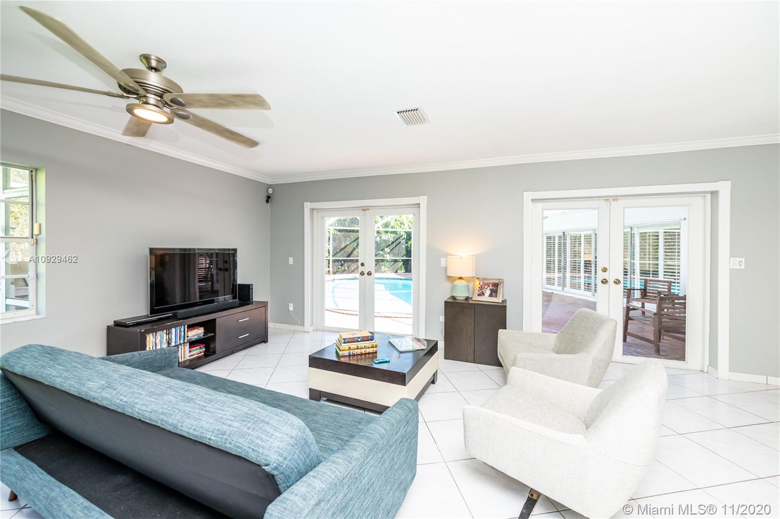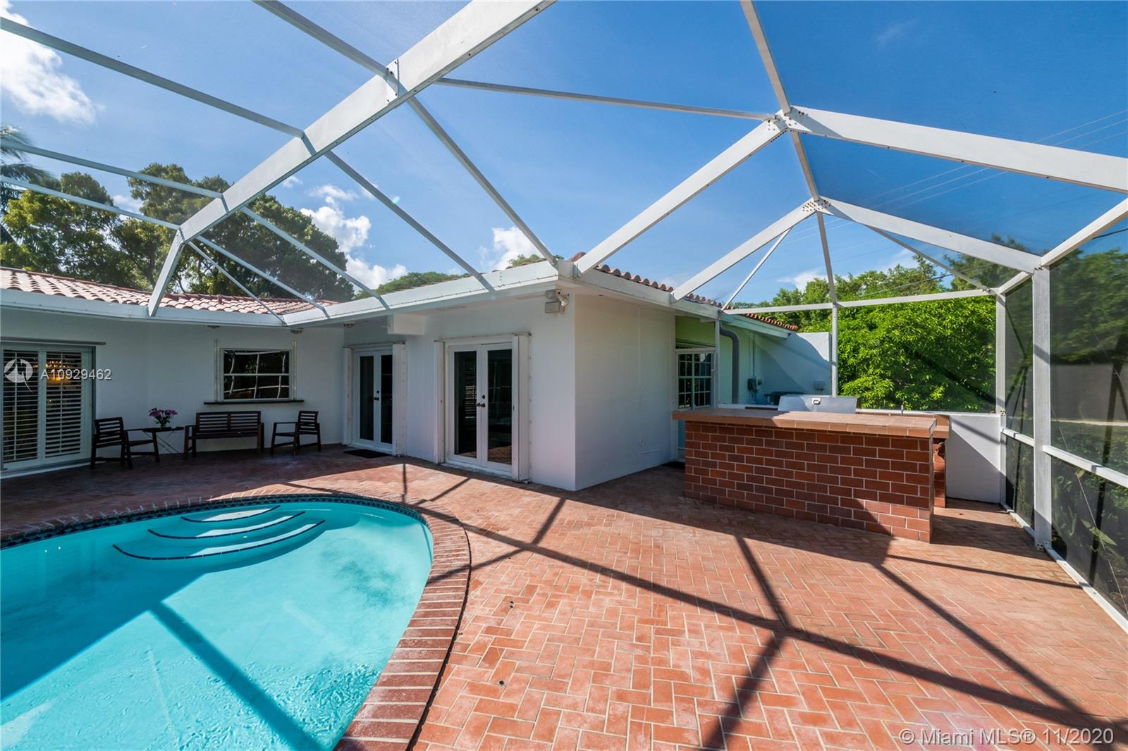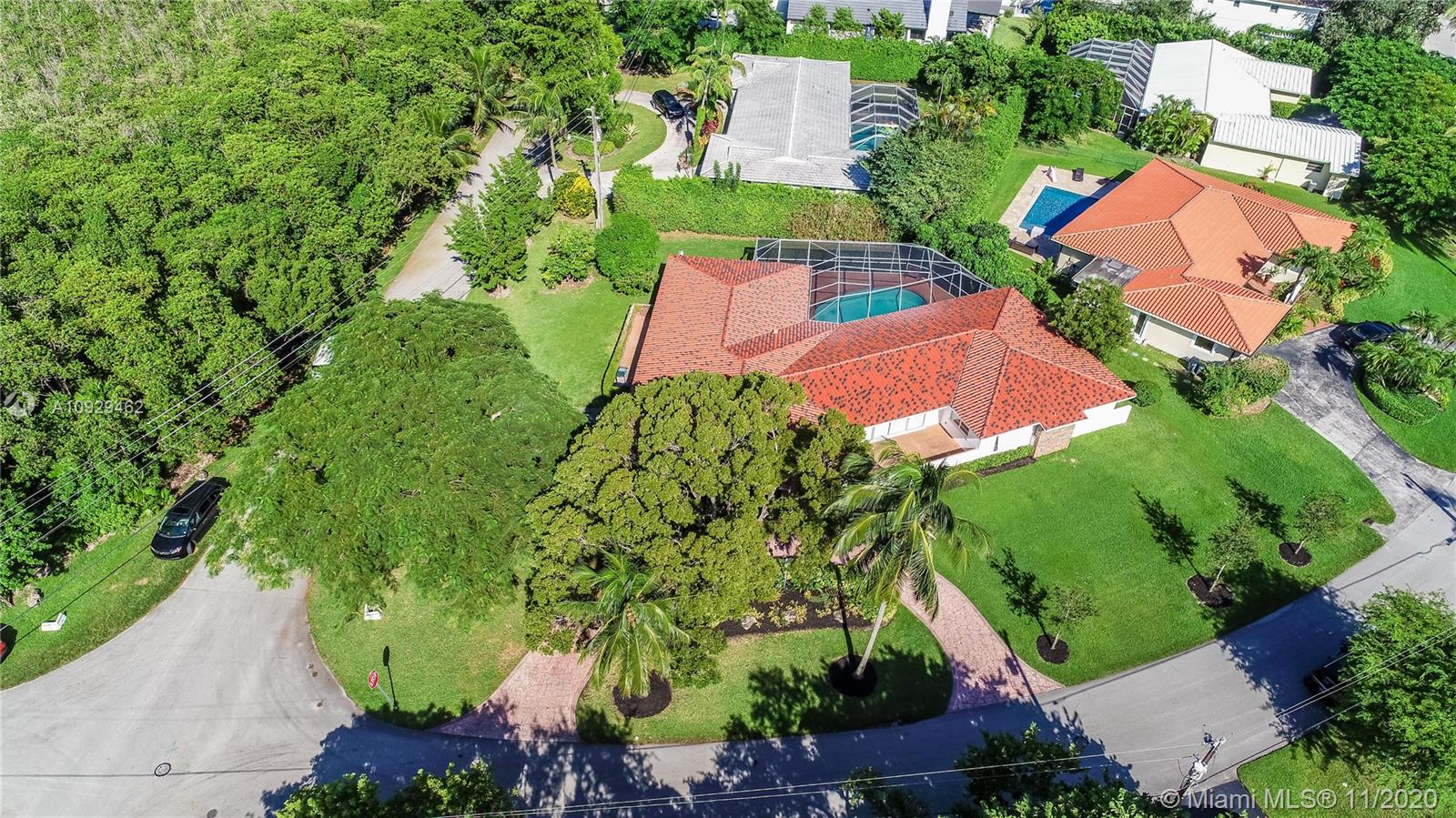 Best Value Property Currently for Sale in Gables By the Sea. Sunshine pours through wide banks of French doors & oversized windows throughout the 16,646 SF residence, reflecting off white ceramic floors to brighten every corner. A flow-through layout enhances the sense of space, particularly in the heart of the home where the family room, club-style wet bar, and the large kitchen with a breakfast room meet with shared views of the screened pool patio and its alfresco kitchen. A bonus room works perfectly as an office, workout space, or playroom. Formal living and dining rooms provide options for more refined entertaining. Coral Bay Park is located within the community. Gulliver School PK-8 is adjacent, with A+ rated public schools nearby. Hurricane shutters. 2-car garage.