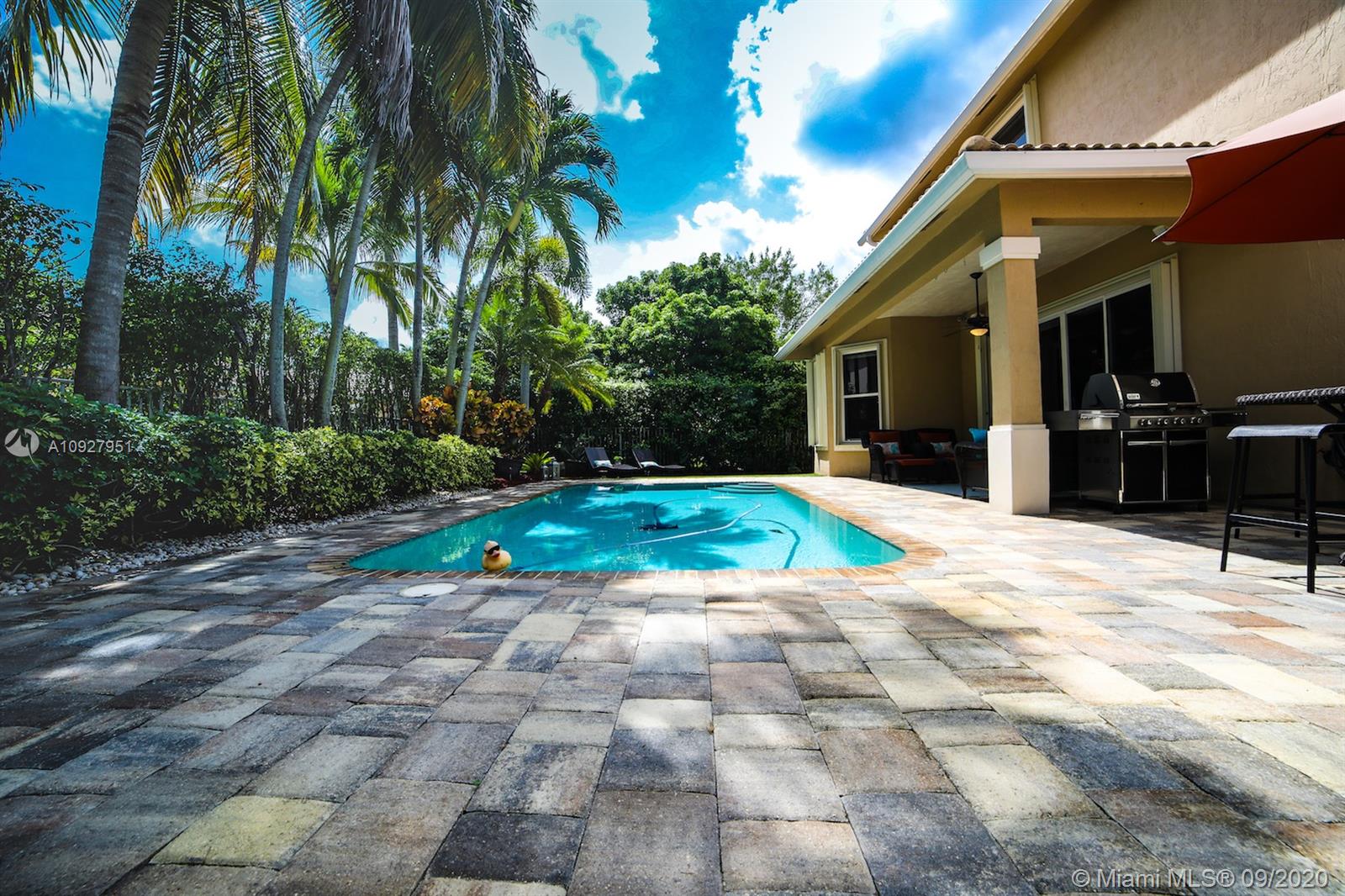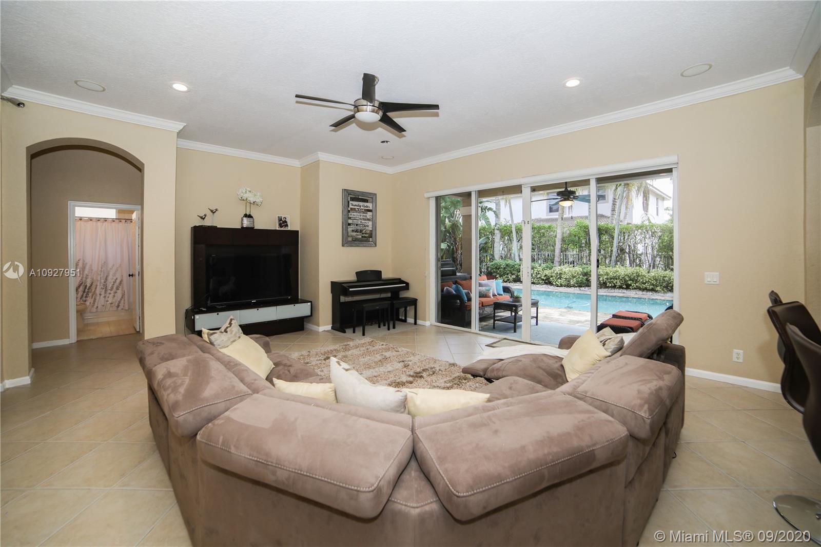 Beautiful spacious home with 7 bedrooms and 5 full bathrooms located in the prestigious community of Weston Hills Country Club. Great layout with 2 bedrooms downstairs. The perfect in-law/guest suite and second room can be used as a playroom. 5 bedrooms upstairs including an office with walk-in closets. Master bedroom with custom his and hers walk-in closets and updated bathroom with a hot tub. 2 car garage with a driveway with space for 4 more cars, Gourmet kitchen with wood cabinets and stainless steel appliances. Nice outdoor, professionally landscaped, Pool with new diamond brite resurfaced, color LED light and heater. Accordion shutters throughout. Plenty of storage and more!! An impeccable and very well maintained home with access to A+ schools. PRICED TO SELL!