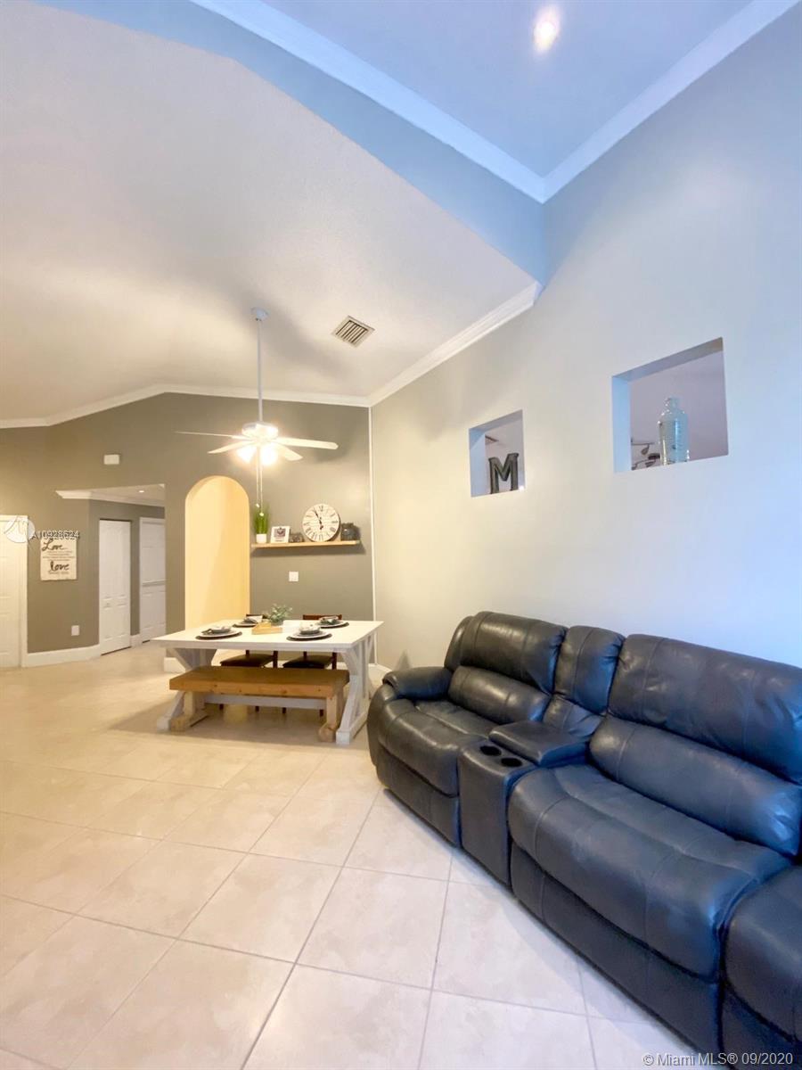 Wow! You will absolutely love this gorgeous, well maintained 3/2 home in highly desired area. The front door leads you to the very spacious living/dining combo area, featuring vast 13' vaulted ceilings, fresh paint & elegant crown molding. The lovely remodeled kitchen offers granite countertops & stainless steel appliances. Enjoy the privacy of the Master Bedroom & large Master En suite as you soak & relax in the spacious tub after a hard days work. Additional features in this split plan model include: new A/C & new Water Heater (2020), indoor laundry room, walk in closets, built in wall safe, Nest A/C Thermostat, Alarm system, faux wood blinds, Double Master Vanities, tiled throughout & more. Great location with easy access to highways, shopping, restaurants, park & much more.