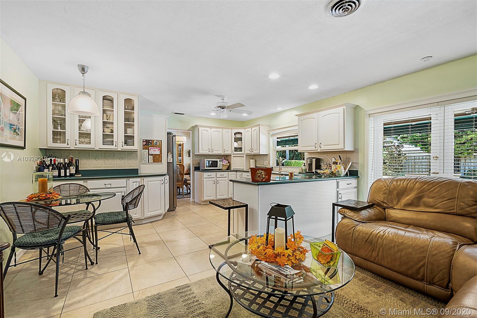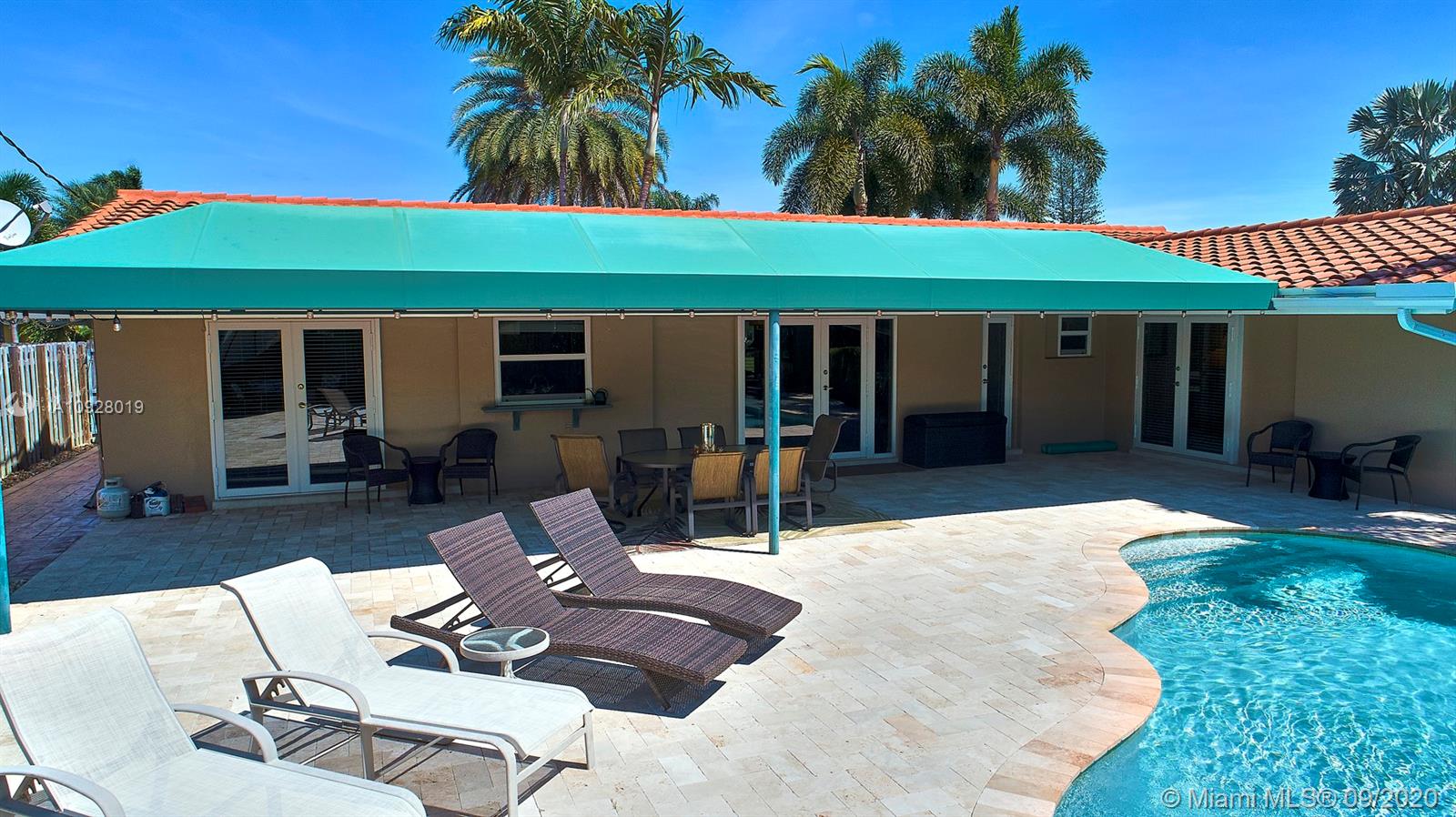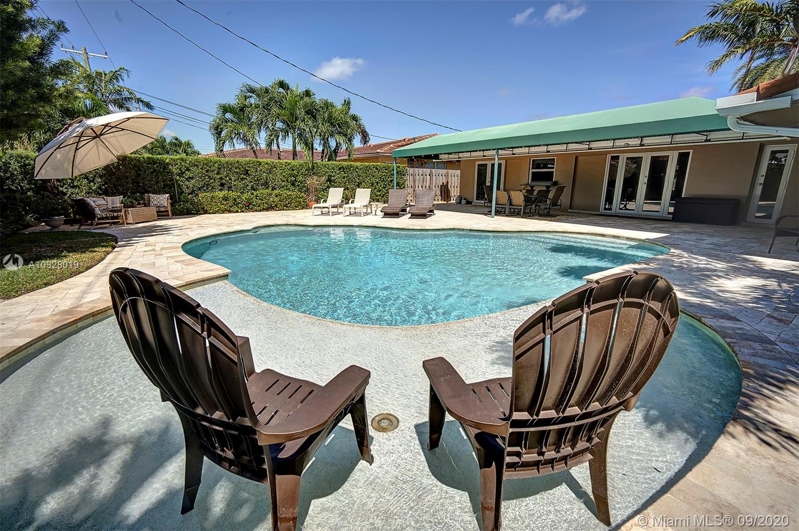 Absolutely the most desirable location ... Coral Ridge Country Club Estates. Just a few minute walk to the beach, restaurants and Bayview Park, this 4/2 boasts a privacy fence and custom-designed saltwater free-form pool with an inviting sun shelf and travertine deck surrounded by lush landscaping. French doors from the master bedroom, dining room and kitchen/family room all lead out to the large covered patio, with lighting and fans. With newly remodeled guest/cabana bath and garage flooring, this beautiful and impeccably-maintained home is on the market for the first time since 1993. Freshly painted inside and out, with porcelain tile, SS appliances, and impact windows and doors throughout. Sun, swim and entertain in this move-in ready home in a delightful neighborhood.