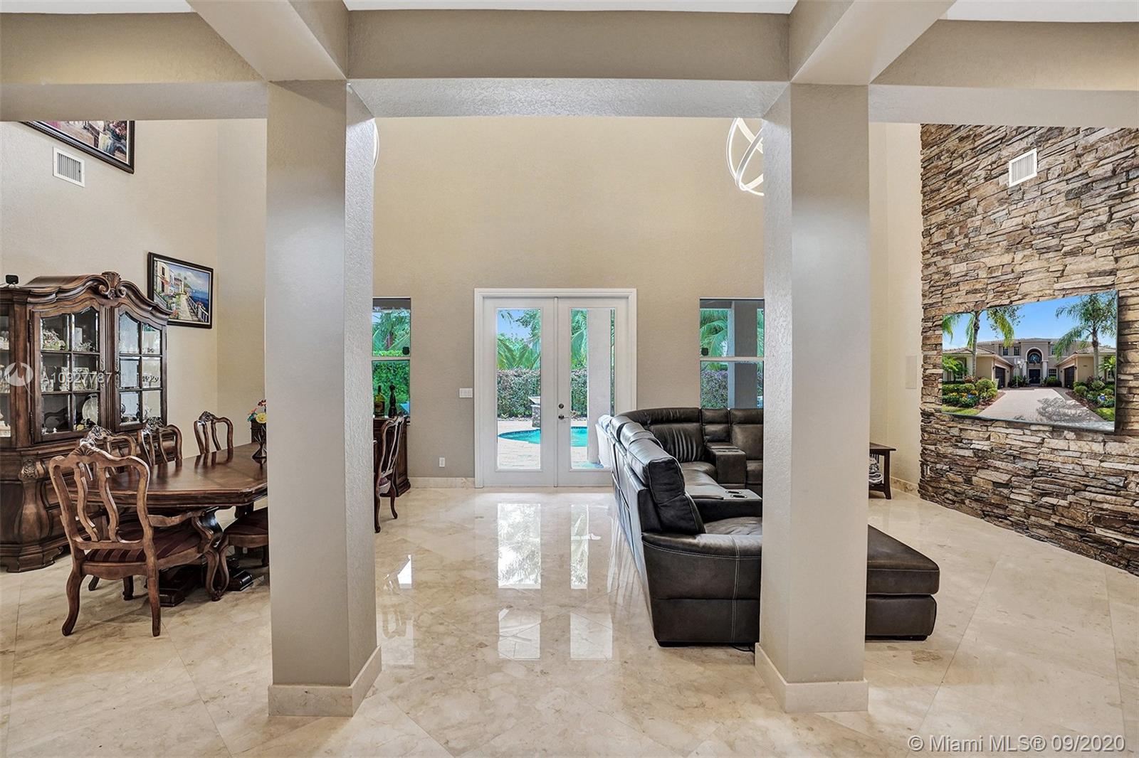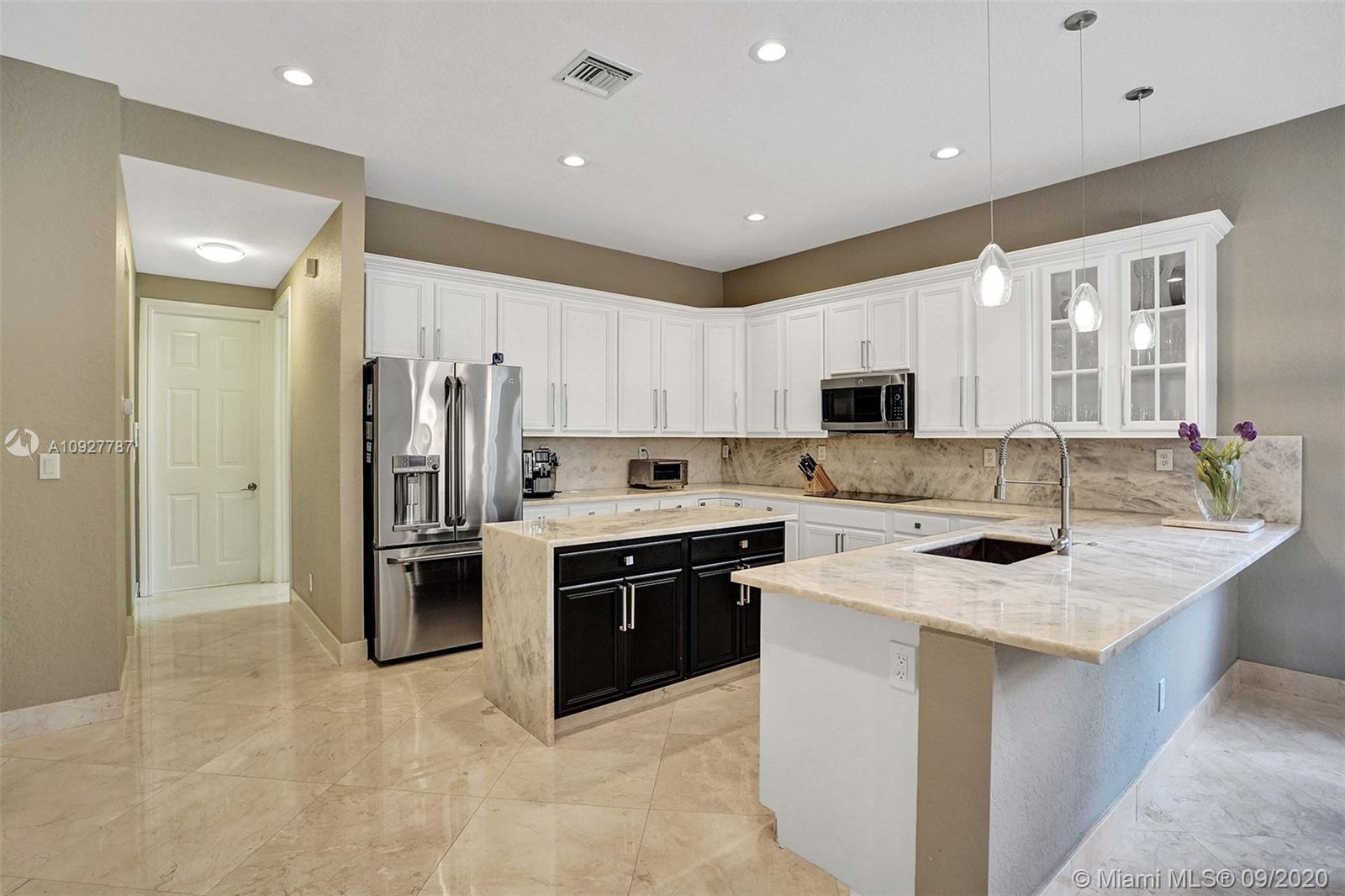 Recently renovated luxury estate home located in The Isles of Weston.Popular Montego model features 6BR/5.5BA office*large loft/game room. Spacious gourmet kitchen with 42" white wood cabinets, center island, new white quartzite counters, backsplash, stainless steel appliances, double wall oven, wine refrigerator, walk-in pantry. Newly re-built heated pool w/ dual fountains, travertine pool deck, and expansive covered patio.Grand owners suite on the first level with a new modern bathroom including a vessel tub, dual sinks, Toto Neorest toilet, custom walk-in closet. New marble flooring on the first level. Plush carpet on the 2nd level.Full accordion protection. 4 car garage. Backs to berm with no neighbors behind for privacy. Walk to the state of the art community center.