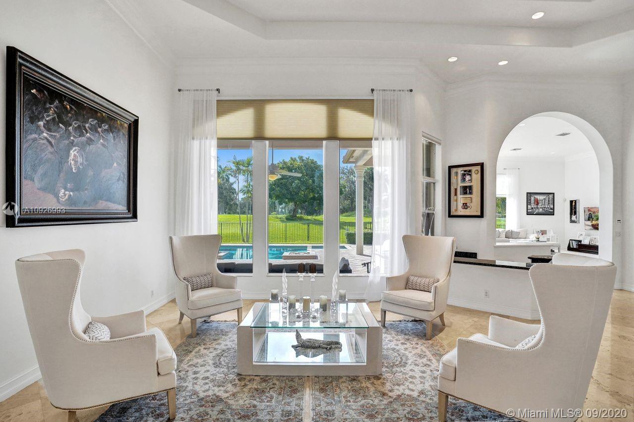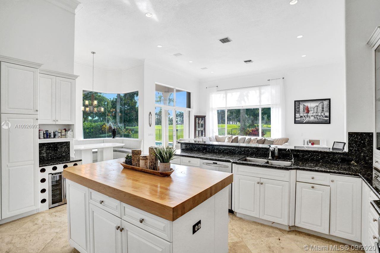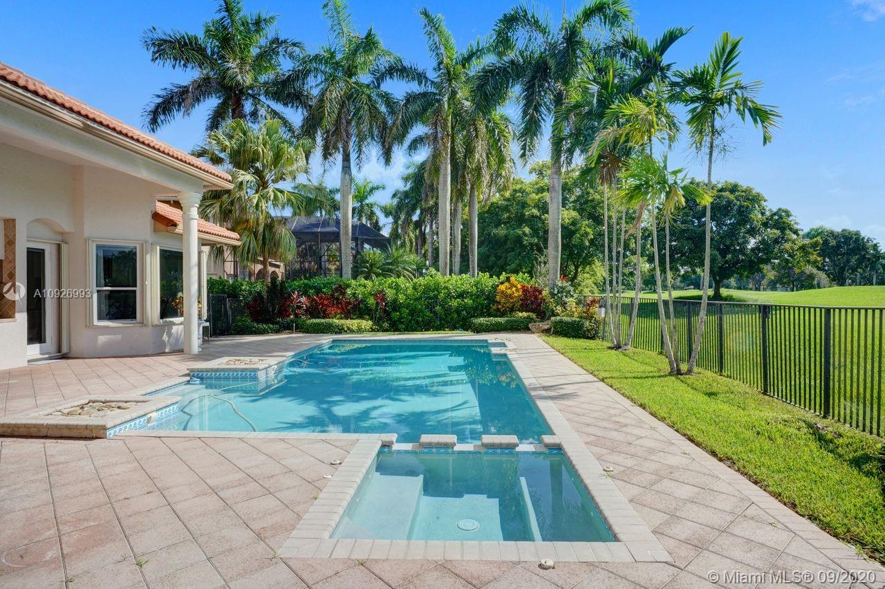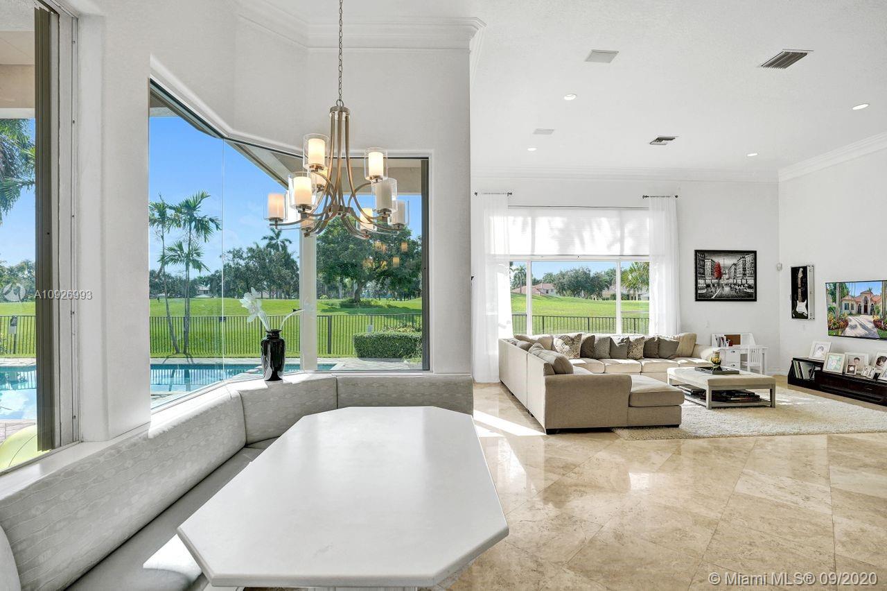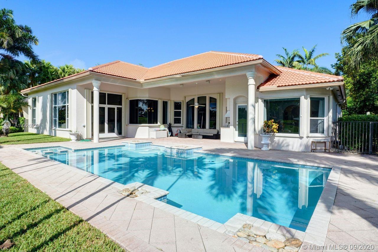 Tucked in the boutique community of Provence at Weston Hills Country Club. This grand one story custom home boasts expansive golf views of the 6th hole of The Players Course. BRAND NEW ROOF. NEW CONTEMPORARY BATHS (3) IN PROGRESS. Full accordion protection. Oversized pool fully fenced yard with summer kitchen. Step into elegance with marble flooring throughout the living areas. Attention to every detail. Enjoy 4 spacious bedrooms PLUS OFFICE, PLAYROOM AND EXERCISE ROOM. Take in the views with your floor to ceiling living room windows. Enjoy decorator window treatments and fixtures. Extensive crown moldings, flat walls, volume ceilings. White contemporary kitchen with granite and butcher block countertops, center island, Sub Zero refrigerator, and freezer, Stainless steel wall oven