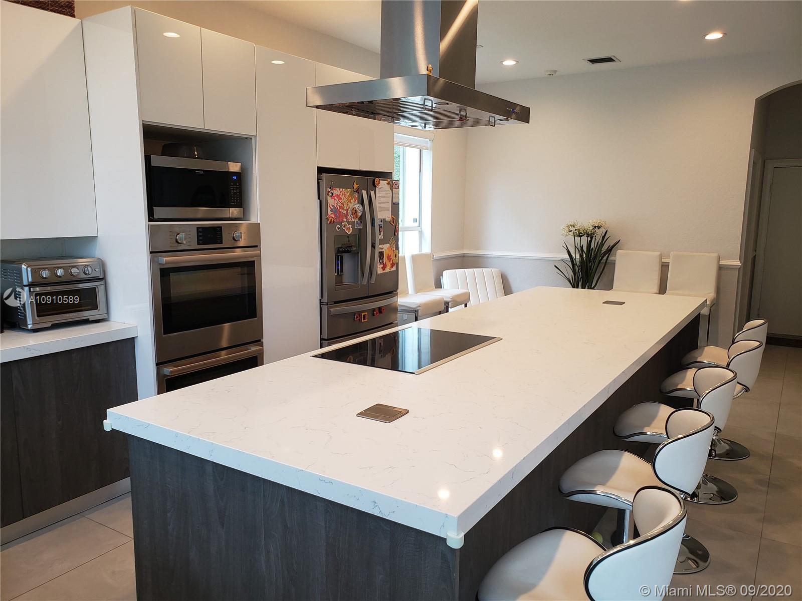 Resort style living at this beautiful house with lot of upgrades. Completely open space kitchen with cooking island with quartz. Kids security net on all 2nd floor and around pool. New washer and dryer New refrigerator New sprinkler pump New water heater 2 New Outside A/C units. New pool pump New salt purification system for pool New water purification system for entire house.Upgraded Tile at first floor.Security Cameras installed.Tinted windows sun protection.Facing very peaceful green area with no neighbors. Poll with cascade waterfall. All house is protected with accordion hurricane shutters.One completely furnished office(den - 5th room) Property is ready for you to plug in your generator and give power when public power is down Please TEXT/showassist listing agent to schedule