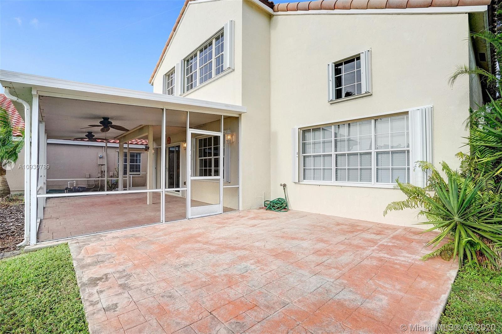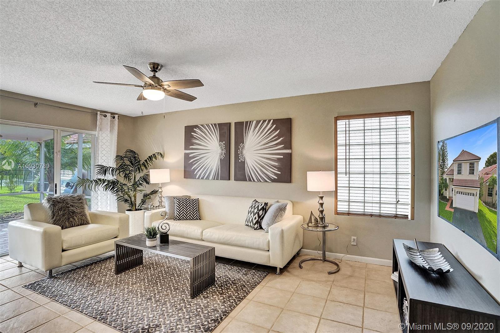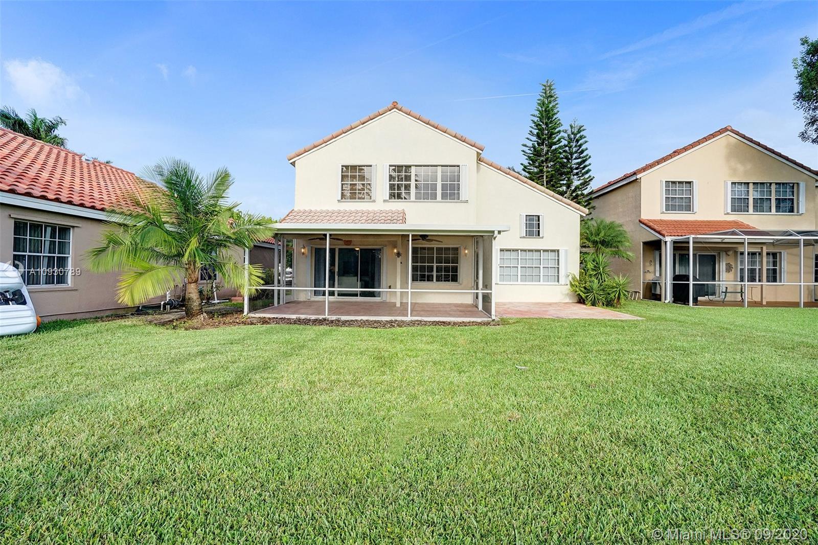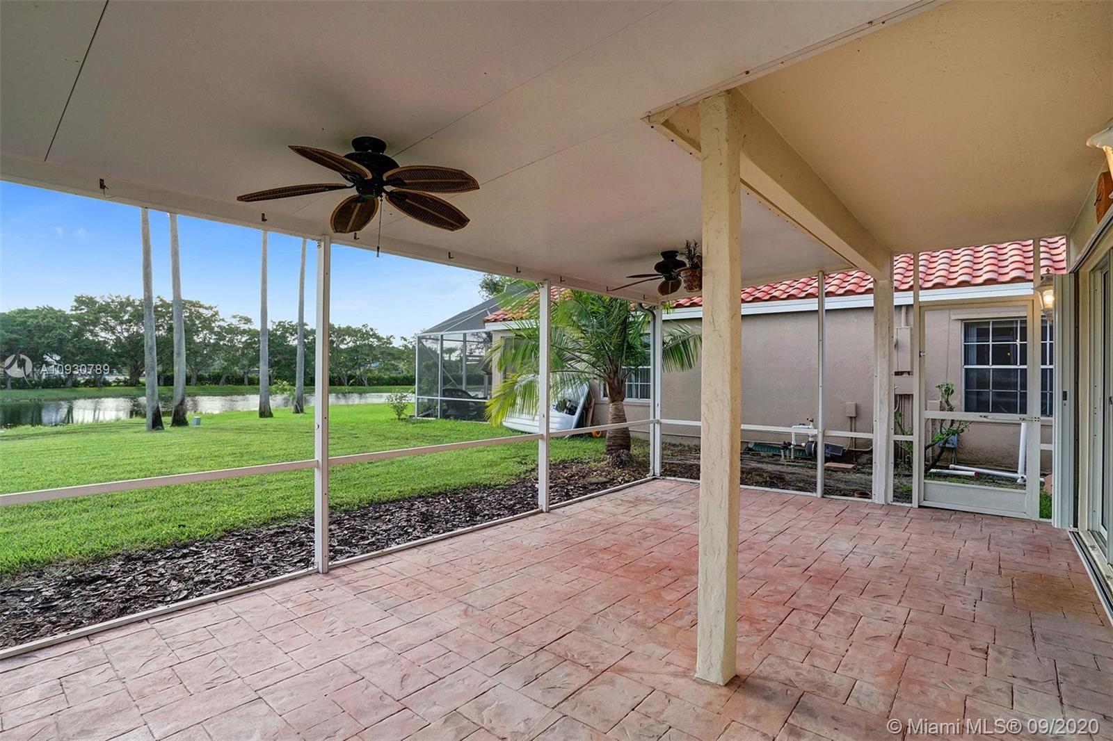 LARGEST & MOST BEAUTIFUL Weston WATERFRONT BACKYARD available in this price range. Enjoy tranquil scenery w/ family & friends from your extended screened-in covered patio. Inside, this is one of the LARGEST 3 bedroom 2.5 bath FLOORPLANS in Weston. This home has been FRESHLY PAINTED w/ DESIGNER LIGHTING, 2 story vaulted ceiling in living/dining room, neutral tiles on 1st floor, contemporary wood-look floors on 2nd floor, & a beautifully stained rustic wood staircase. Stainless steel appliances & granite counter tops. REMODELED MASTER BATH w/ gorgeous stand-alone tub. Custom cabinetry in master closet and 2nd bedroom. BRAND NEW A/C. Air ducts have been cleaned & sanitized. 2006 Roof, ACCORDION SHUTTERS, Laundry Rm. Near shops, parks, elementary, middle school & I-75. Zoned for Cypress Bay.