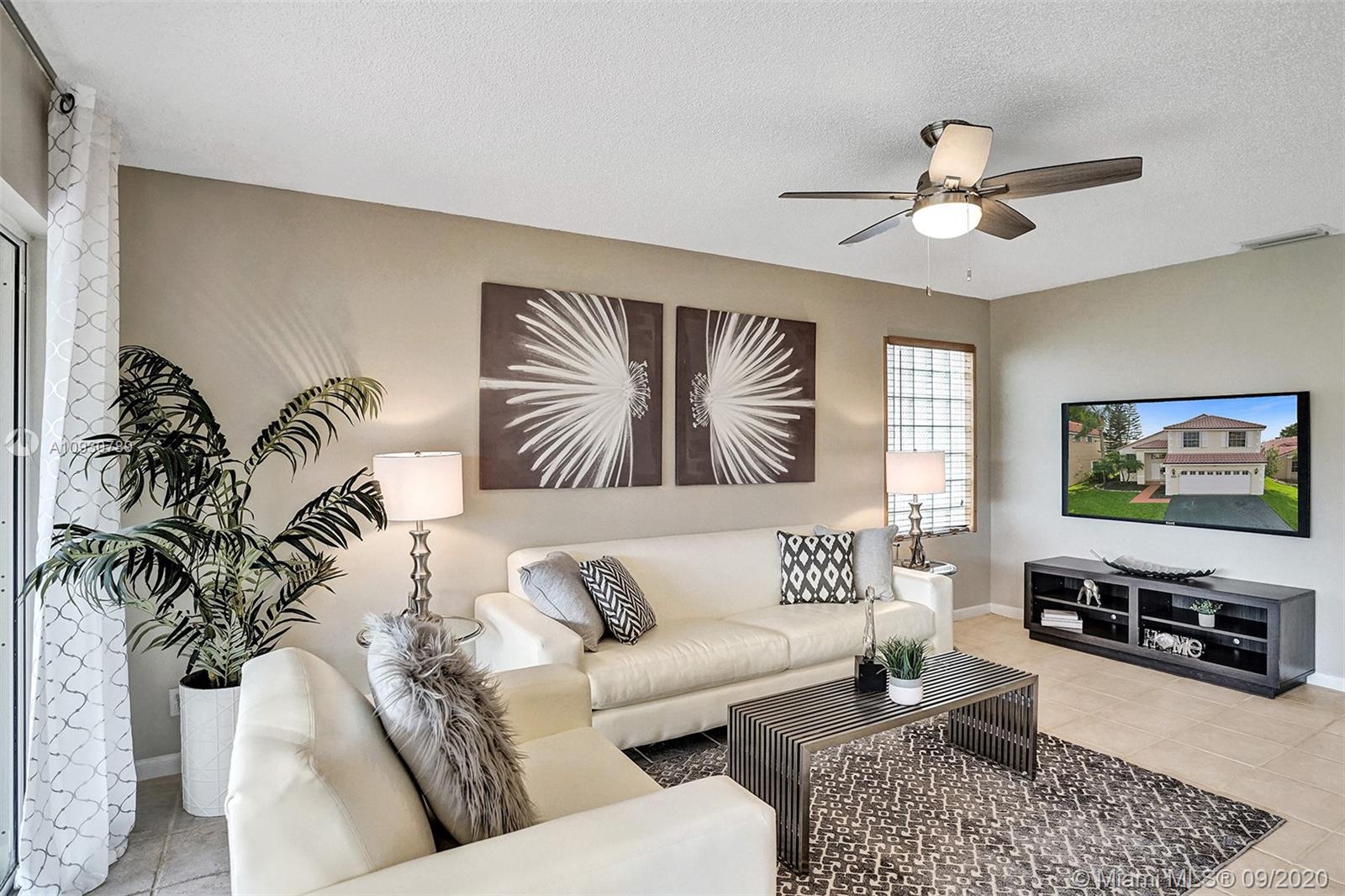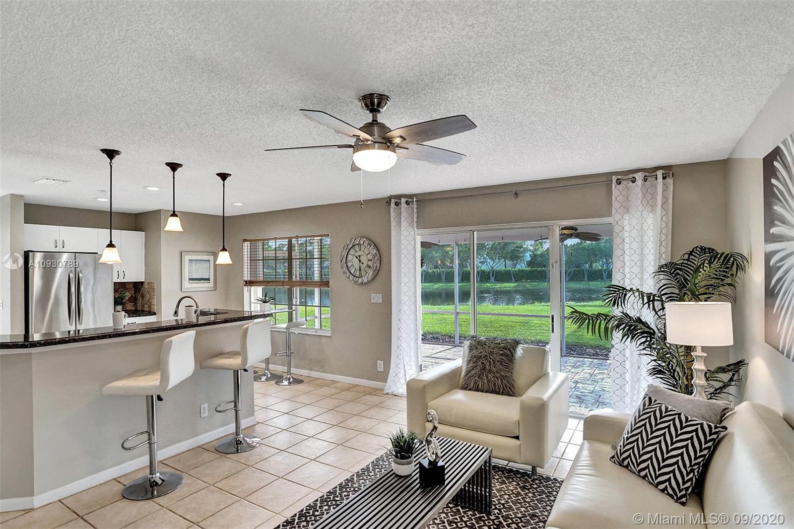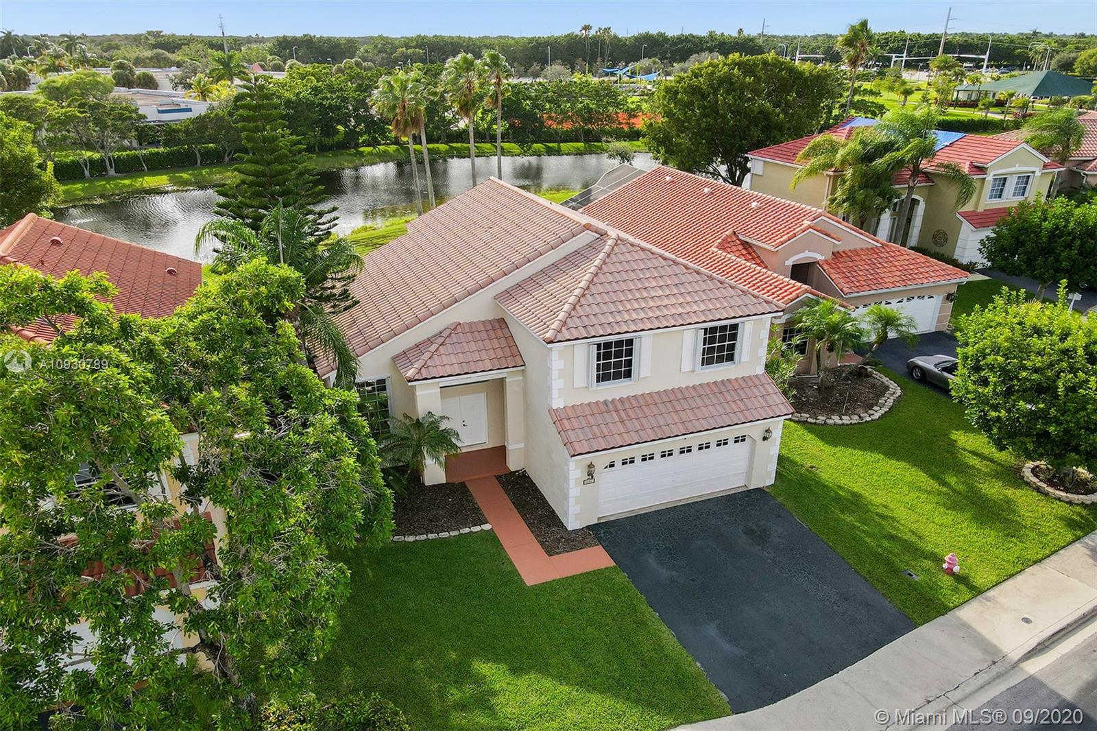 LARGEST & MOST BEAUTIFUL Weston WATERFRONT BACKYARD available in this price range. Enjoy tranquil scenery w/ family & friends from your extended screened-in covered patio. Inside, this is one of the LARGEST 3 bedroom 2.5 bath FLOORPLANS in Weston. This home has been FRESHLY PAINTED w/ DESIGNER LIGHTING, 2 story vaulted ceiling in living/dining room, neutral tiles on 1st floor, contemporary wood-look floors on 2nd floor, & a beautifully stained rustic wood staircase. Stainless steel appliances & granite counter tops. REMODELED MASTER BATH w/ gorgeous stand-alone tub. Custom cabinetry in master closet and 2nd bedroom. BRAND NEW A/C. Air ducts have been cleaned & sanitized. 2006 Roof, ACCORDION SHUTTERS, Laundry Rm. Near shops, parks, elementary, middle school & I-75. Zoned for Cypress Bay.