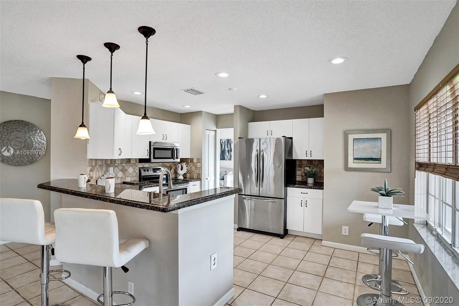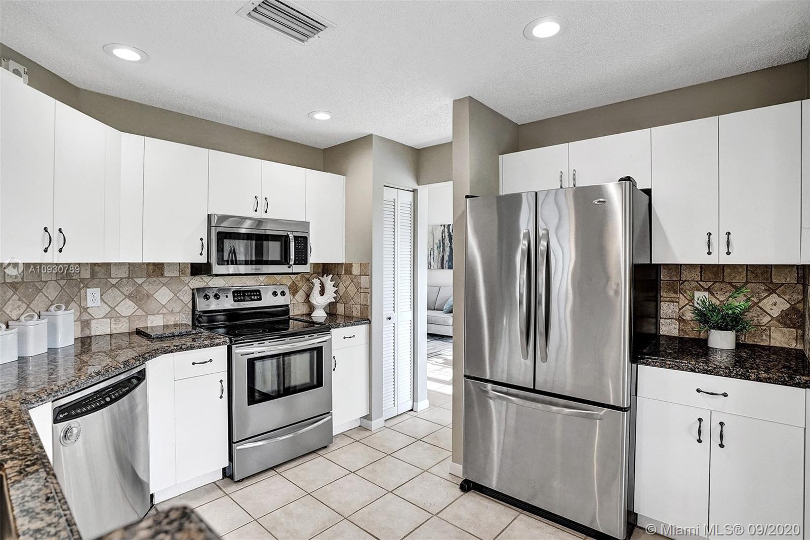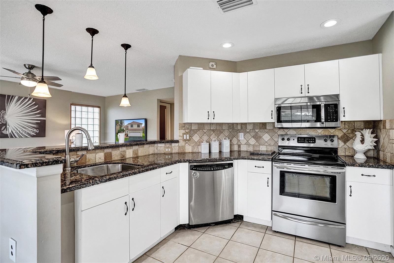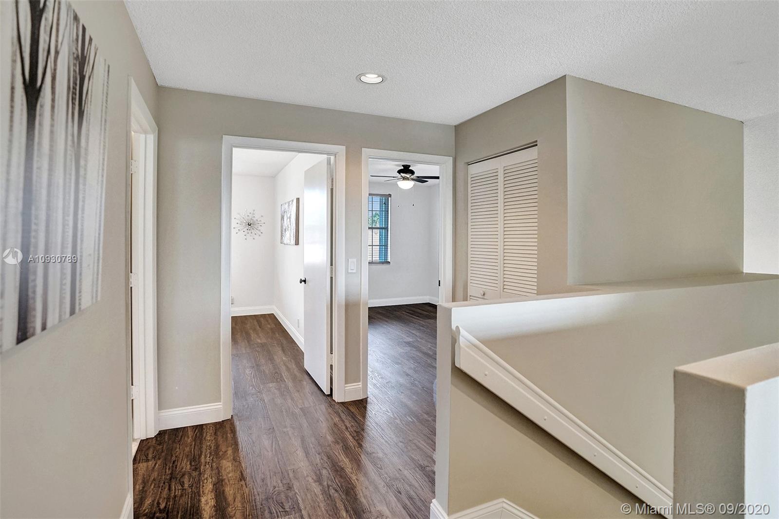 LARGEST & MOST BEAUTIFUL Weston WATERFRONT BACKYARD available in this price range. Enjoy tranquil scenery w/ family & friends from your extended screened-in covered patio. Inside, this is one of the LARGEST 3 bedroom 2.5 bath FLOORPLANS in Weston. This home has been FRESHLY PAINTED w/ DESIGNER LIGHTING, 2 story vaulted ceiling in living/dining room, neutral tiles on 1st floor, contemporary wood-look floors on 2nd floor, & a beautifully stained rustic wood staircase. Stainless steel appliances & granite counter tops. REMODELED MASTER BATH w/ gorgeous stand-alone tub. Custom cabinetry in master closet and 2nd bedroom. BRAND NEW A/C. Air ducts have been cleaned & sanitized. 2006 Roof, ACCORDION SHUTTERS, Laundry Rm. Near shops, parks, elementary, middle school & I-75. Zoned for Cypress Bay.