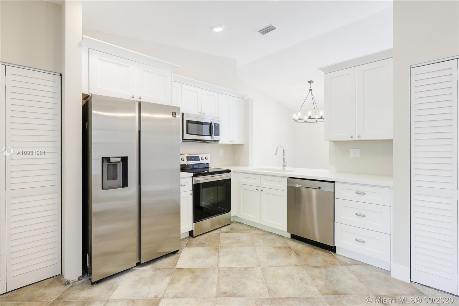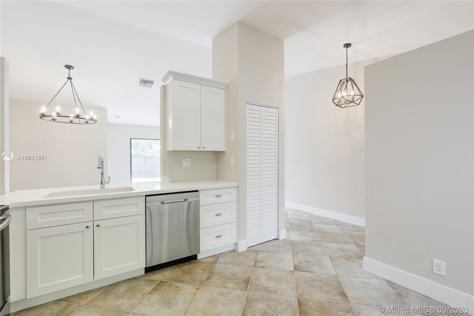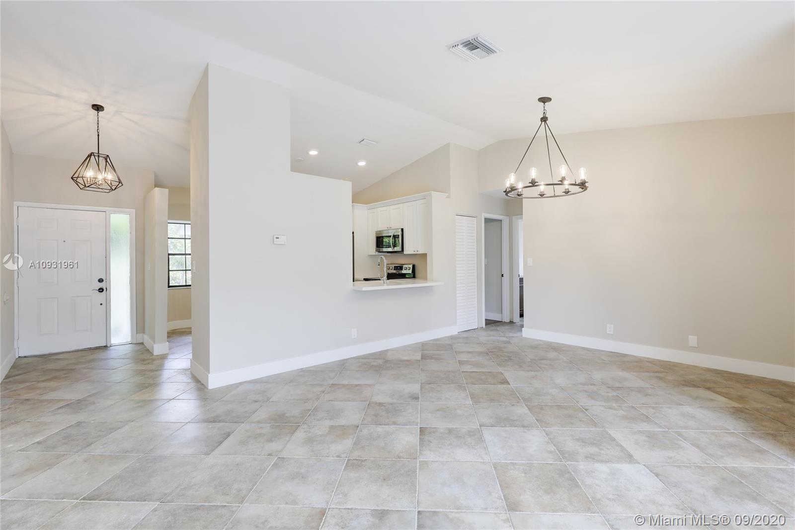 Welcome home! This beautiful house has just undergone a full renovation. It features an open concept while maintaining maximum kitchen cabinets. Flat smooth textured ceilings throughout, walls and trim have been freshly painted in a neutral pallet. Brand new luxury light fixtures emphasize the high ceilings in this home. There is a brand new kitchen with wood cabinets featuring soft close doors and drawers, quartz countertops, beautiful Kohler faucet, granite composite sink, new Samsung appliances. Both bathrooms have been beautifully transformed. The home includes hurricane shutters, new water heater and a two-car garage. SHOWINGS BEGIN AT 10 AM ON SATURDAY, 9/26.