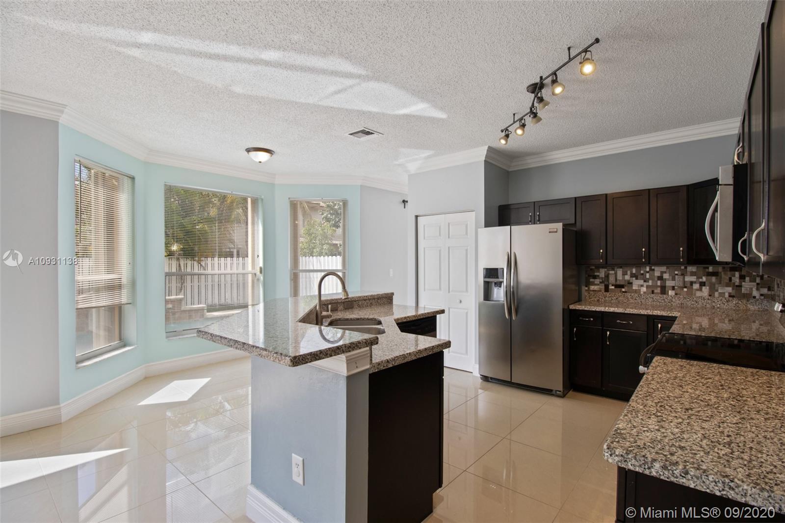Retreat in this beautiful Mediterranean style home. Centered in a most beautiful area. You are welcomed home through tall French doors opening into the spacious surroundings of the foyer and entertainment areas of the home leading to glass doors that invite you to enjoy the views of the refreshing swimming pool with fountains set in the tropical backyard with plenty of space to enjoy outdoor dining and entertaining. Dinner is served from the spacious upgraded kitchen that boasts luxury features such as granite counter tops and stainless steel appliances with a bar top island that serves to the family Room which is filled with natural light from the picturesque bay windows. Cleanse and refresh in the modern spa like water rooms and showers and seek refuge in any of the 4 spacious bedrooms.