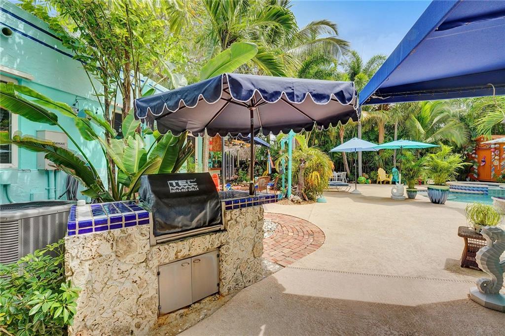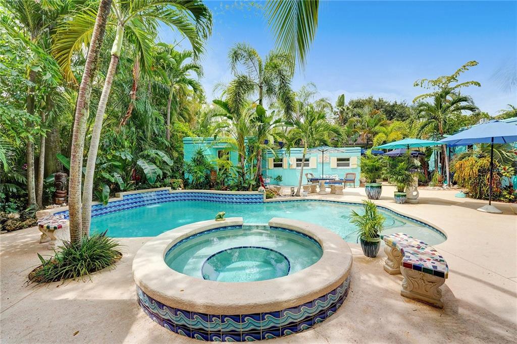 FEELS LIKE VACATION IN KEY WEST EVERY DAY! One of the coolest, fun properties in desirable Rio Vista. MAIN HOUSE has an extra large master suite (was 2 bed) w/full bath, & a separate den/office also with full bath, & has all the charm, wood floors, fireplace & architectural details you look for in this wonderful neighborhood. Close to Las Olas, beaches and many great shops & restaurants. PLUS a fantastic & private 1 bed 1 bath GUEST HOUSE, with living room AND kitchen. This is priceless! 70x135 lot has incredible outdoor space with southern exposure saltwater pool, spacious patios, tiki hut seating, BBQ, generator and tropical landscaping. This property is a haven for the Buyer looking to get away from it all, and still be close to everything. Would also be a great vacation rental.