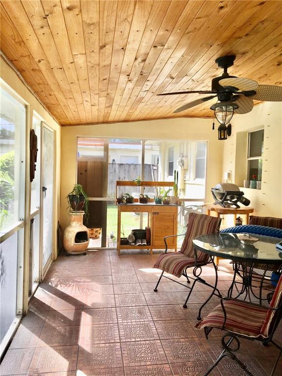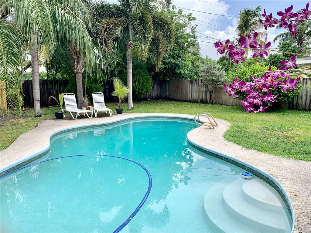 PERFECT 3 BEDROOM, 1 BATH STARTER HOME W/ FREE FORM POOL, A HUGE FENCED REAR YARD & OUT DOOR PRIVATE SHOWER~~~~~NEW SHINGLE ROOF IN 2019~~~~~AC 5 YEARS OLD~~~~~GREAT ENTERTAINING SCREENED PATIO 23X10 W/ BEAMED CEILING~~~~~KITCHEN FEATURES STAINLESS STEEL APPLIANCES & SEPARATE DINING AREA.~~~~~BATHROOM TOTALLY REMODELED WITH STONE TILE WALLS & DECORATIVE GLASS TILE INSERTS.~~~~~3 EXTERIOR DOORS ARE IMPACT; ALL OTHER OPENINGS HAVE HURRICANE PANELS~~~~~HOME HAS A SERVICE WARRANTY W/ PRIDE WHOLE HOME W/ $40.00 DEDUCTIBLE~~~~~PLEASE NOTE; PROPERTY LOCATED ACROSS THE STREET FROM THIS HOME IS COMMERCIAL & DOES NOT OPERATE ON THE WEEKENDS