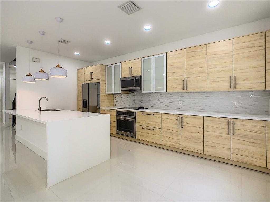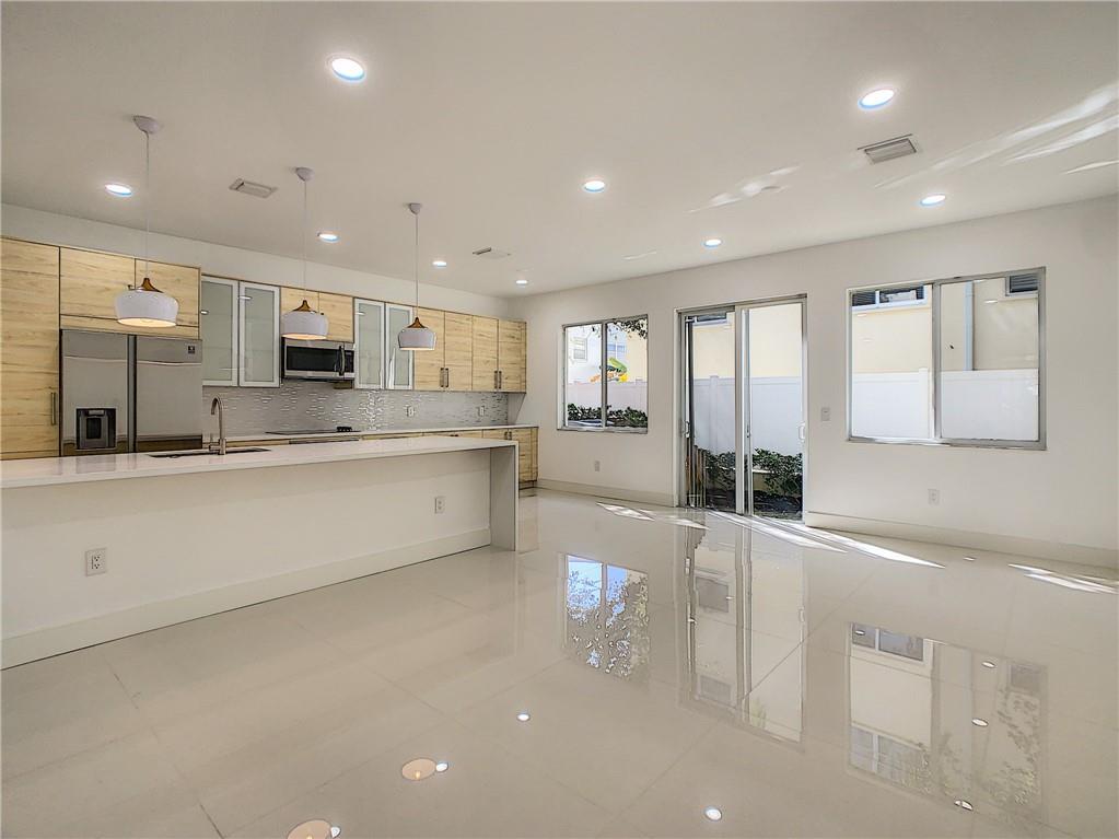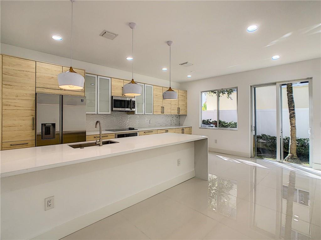 NEW REMODEL Fresh, up to date, modern finishes and appliances. First-floor feather 36x36 porcelain tile, 2nd floor with high-end water-resistant laminate. Gorgeous kitchen with huge quartz island w/waterfall edge. Sleek appliances, a built-in oven, and designer lighting. Private backyard, yours to do with as you please. One car attached garage, one car attached carport. Monthly maintenance is only $200 and includes a community pool and 24/7 security. Excellent location, close to Federal hwy and 95. Pompano is booming, don't miss out on this incredible opportunity.