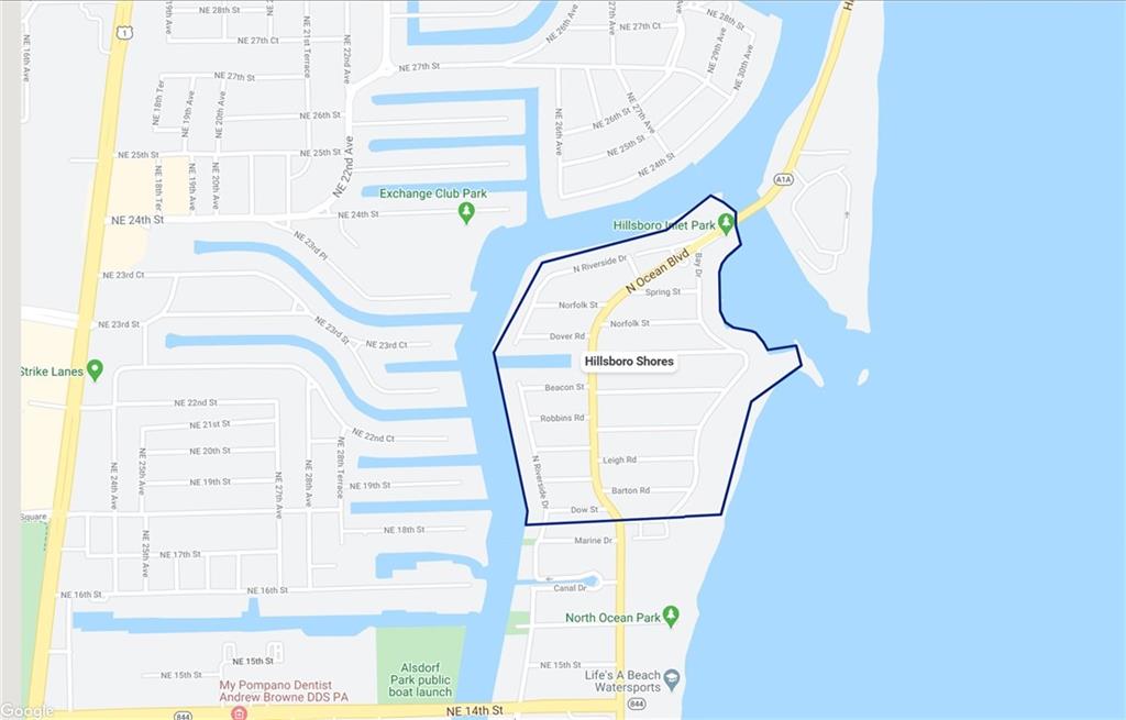MAJOR PRICE ADJUSTMENT. Unique EXTRA WIDE CANAL waterfront lot with home. Quick access to Depth Water Ocean Fishing, Close to Boca Raton, just over the A1A Hillsboro Bridge, south of Hillsboro Mile you will find this quaint Village of Hillsboro Shores. This location is perfect for a custom “DREAM HOME” build or a builder’s spec project. Neighborhood ARV of over $2.5 million. Some home listed for over $6 million. The sky's the limit on what you can do. Walk or golf cart to PRIVATE ACCESS BEACH. Close to 14th St. boat ramp for smaller boats & jet skis. Close to Broward County Exec. Airport and Boca Raton Exec. Airport.