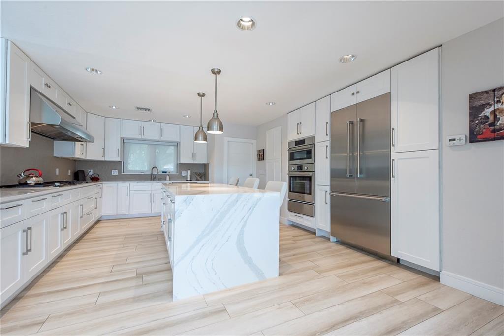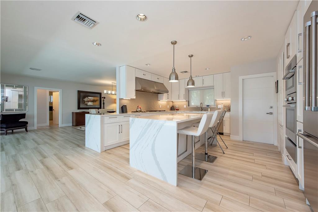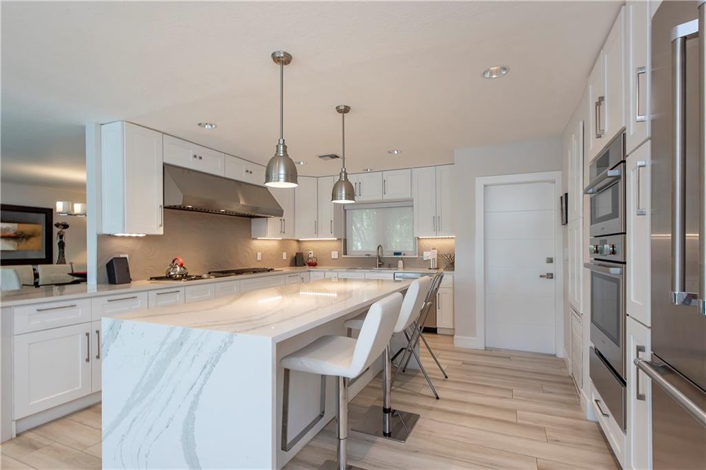 Great lot in Cypress Lakes with 98 feet of water frontage. 700 sq feet dock with LED lighting. Heated pool, fenced yard, and circular paved driveway. Updated kitchen white quartz waterfall, gas stovetop, high end appliances, porcelain plank flooring, impact glass throughout, wide lake views, updated saltwater pool.