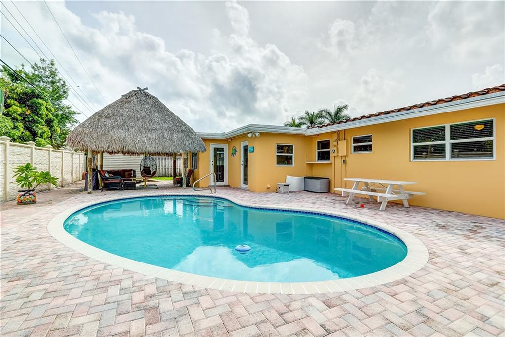Great pool home in fabulous Imperial Point neighborhood. The moment you enter you will love the comfortable layout great for entertaining and relaxing. This home has been updated with fabulous custom kitchen which features stainless steel appliances, double oven, quartz counter-tops & white cabinetry. Enjoy pool view that leads to private backyard with tiki hut & concrete wall. Property has beautiful vinyl wood floors throughout. Some of the upgrades include new irrigation, security system, Hurricane Impact Windows throughout, remodeled bathrms, large storage shed, A/C replaced in 2017& pantry, laundry rm. Large paved driveway. Location! Near PINECREST,Gibbons,WA.Close to beaches, & restaurants. Carport converted easy to convert back. Room for 4th bedroom