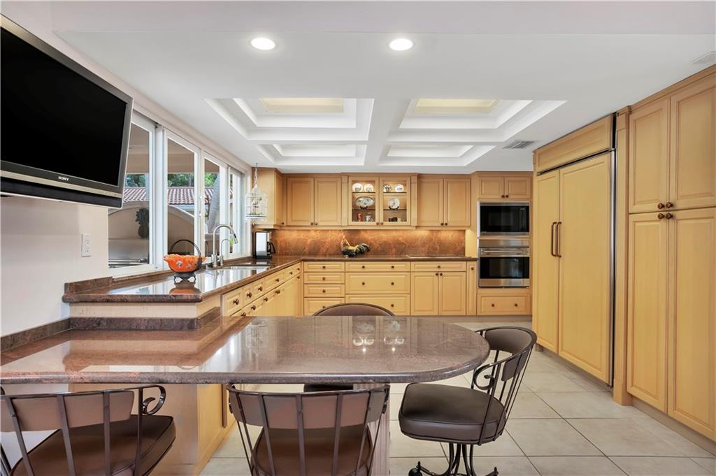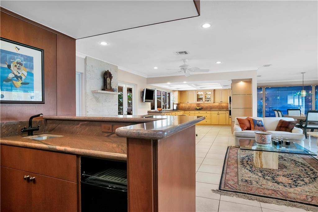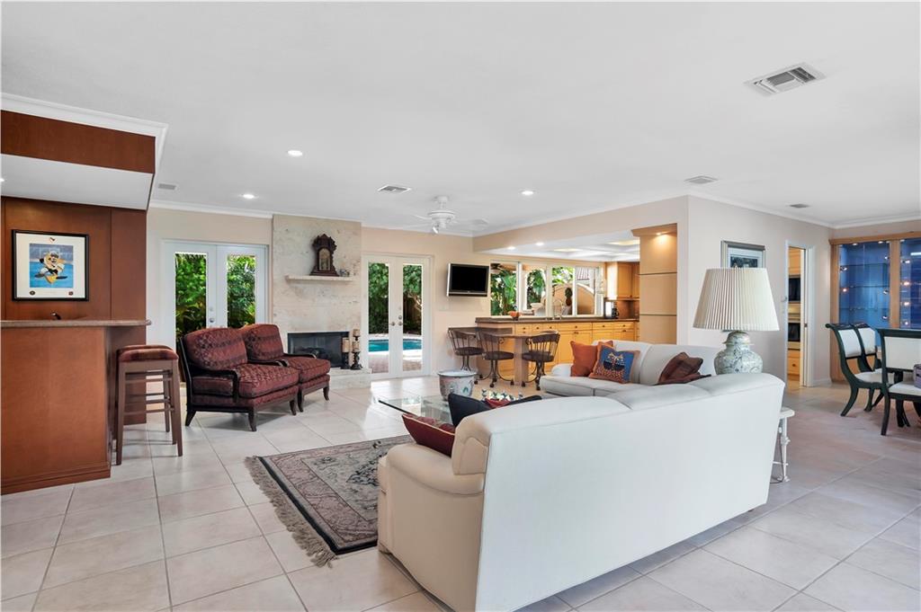 This tastefully updated 3 bed, 2 bath home has the open floor concept. Wolf & Subzero appliances with high end wood cabinets and granite, full wet bar & fireplace. Enjoy the views of the out door seating area, pool, & summer kitchen under extended covered patio perfect for entertaining. Both Master and 2nd bath beautifully updated 2017, basket weave granite flooring, high end fixtures, granite & vanities. Built-ins in all bedrooms with new wood flooring. Impact windows and full house generator. Walk thru house using 3D view... https://my.matterport.com/show/?m=XzTn9KGPsa7&mls=1
