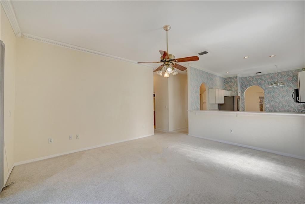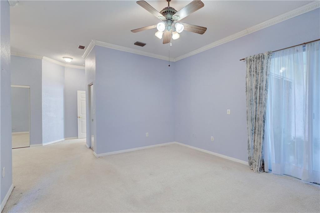 Charming waterfront, one story home in beautiful Emerald Estates. This home features an expansive master suite with walk-in closest and sitting area, kitchen with peninsula and eating area, SS appliances, separate family room, carpeted floors, lake views from the back and side of home, patio, two car garage, and a newer roof -2 years old. Located in a guard gated community with amenities such as swimming pool area, fitness center, and playground area. Association includes landscaping, security alarm system, and basic cable. Great location, just minutes away from I-75, A rated schools, close to shopping centers, supermarket, retail stores and much more. Schedule your showing today.