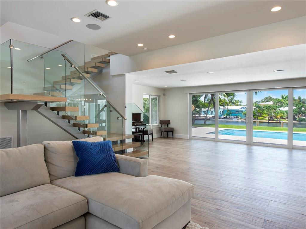 Coral Ridge Waterfront home completely renovated in Bayview school district in Ft. Lauderdale. Paddle board, water ski or kayak in your backyard. Impact windows & doors, 2 dishwashers, all Thermador appliances, natural gas range with grill cook top, Calcutta marble kitchen counters. Porcelain floors on main floor & wood floors on 2nd floor. House is equipped with speakers in all rooms and outdoor patio, wired for outdoor video monitors and new Generator in 2018. All baths have Carerra Marble counter tops, Steam Shower and Toto toilet in master bath, tankless water heater, 2 laundry rooms and 2 new AC units installed in 2020. Pool refinished in 2018 with new pool heater. Enjoy outdoor living at it's best with large backyard and pool overlooking Middle River. A must see.