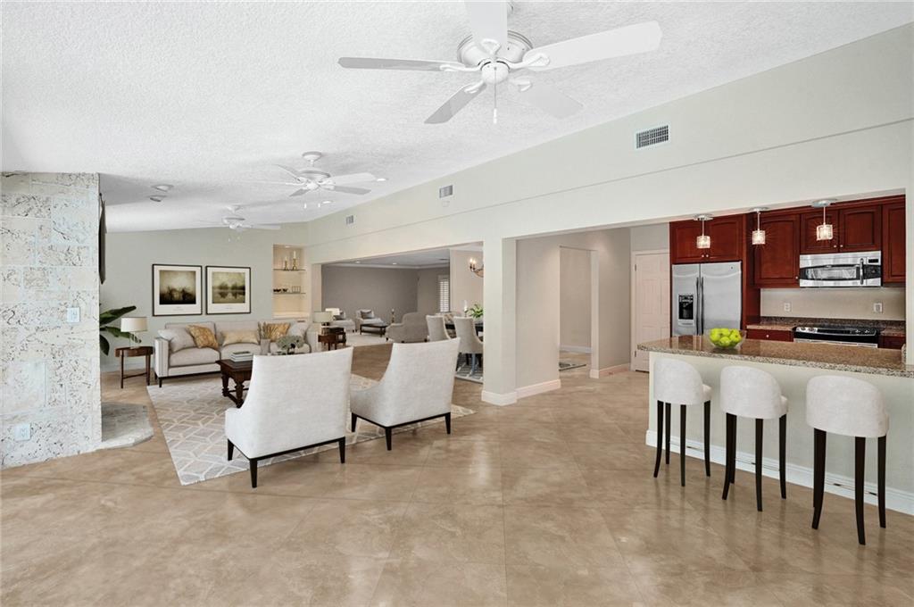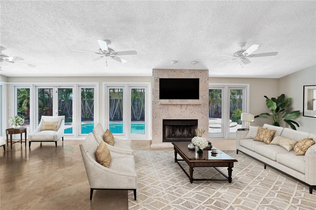 Fantastic 4 bedroom 3 bath home in the heart of Coral Ridge Country Club. Open and spacious floorplan totaling 2,700 square feet. Beautiful marble flooring throughout, crown molding and recessed lighting. Impact windows and doors! Huge living space with fireplace and pool views! Spacious bedrooms. All bathrooms updated! Beautiful and private backyard features pool, lush landscaping and grass area. Big laundry room with storage. 2 car garage!