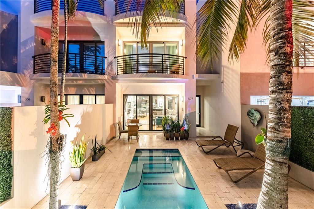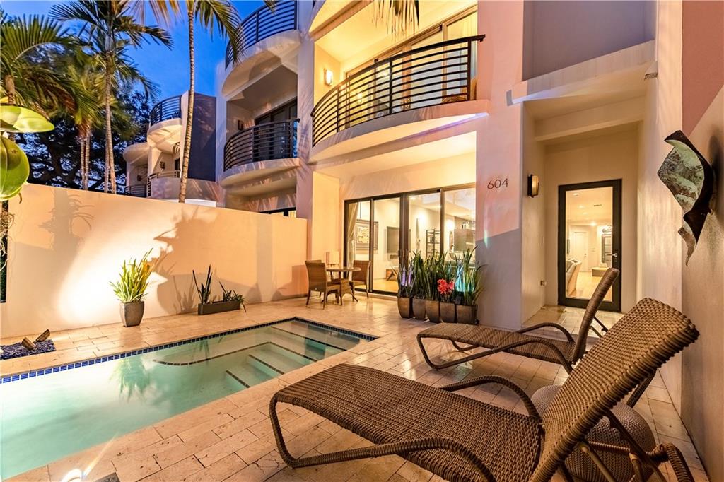 Everything you are looking for. Here is a sophisticated three bedroom three and a half bath home with its own pool, elevator, a huge family room and a walk out roof top terrace. Built new in 2008 and updated since the home features meticulously updated interiors, a very spacious plan, wide rooms, floor to ceiling windows, all V.I.P. suite bedrooms, office/loft, great room opens to the pool and private garden. Also a fabulous kitchen with island seating, steel appliances and premium cabinetry. The main bedroom suite includes a sitting area and three generously sized closets. The elevator goes to all three floors, perfect for catering moonlit evenings on the roof. This is the largest plan at Victoria Landing with a two car garage, additional storage and a driveway for two more vehicles