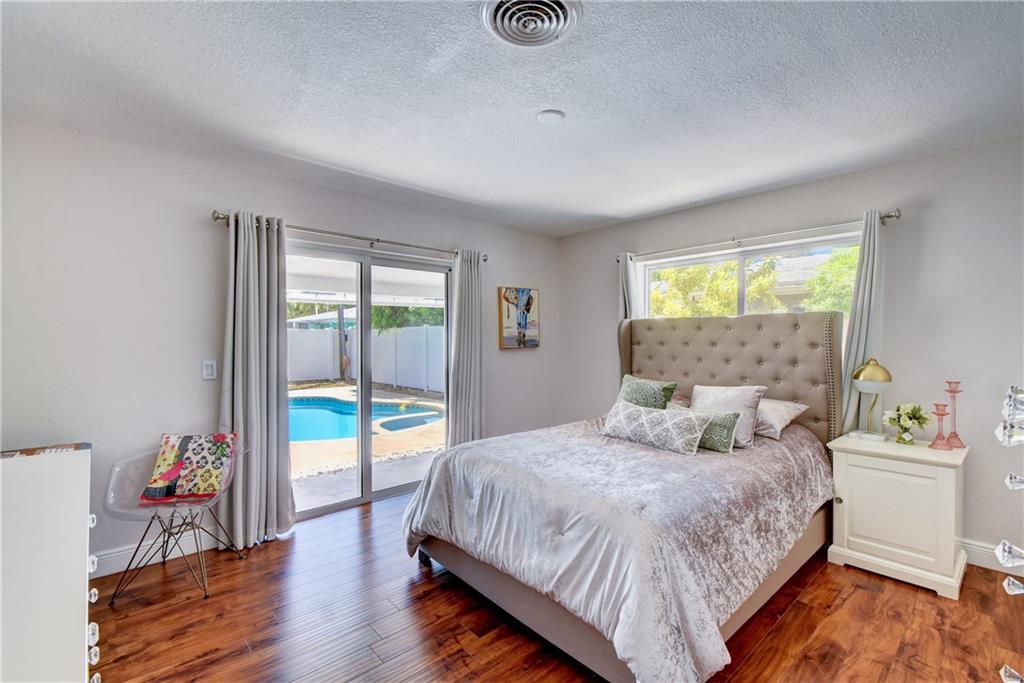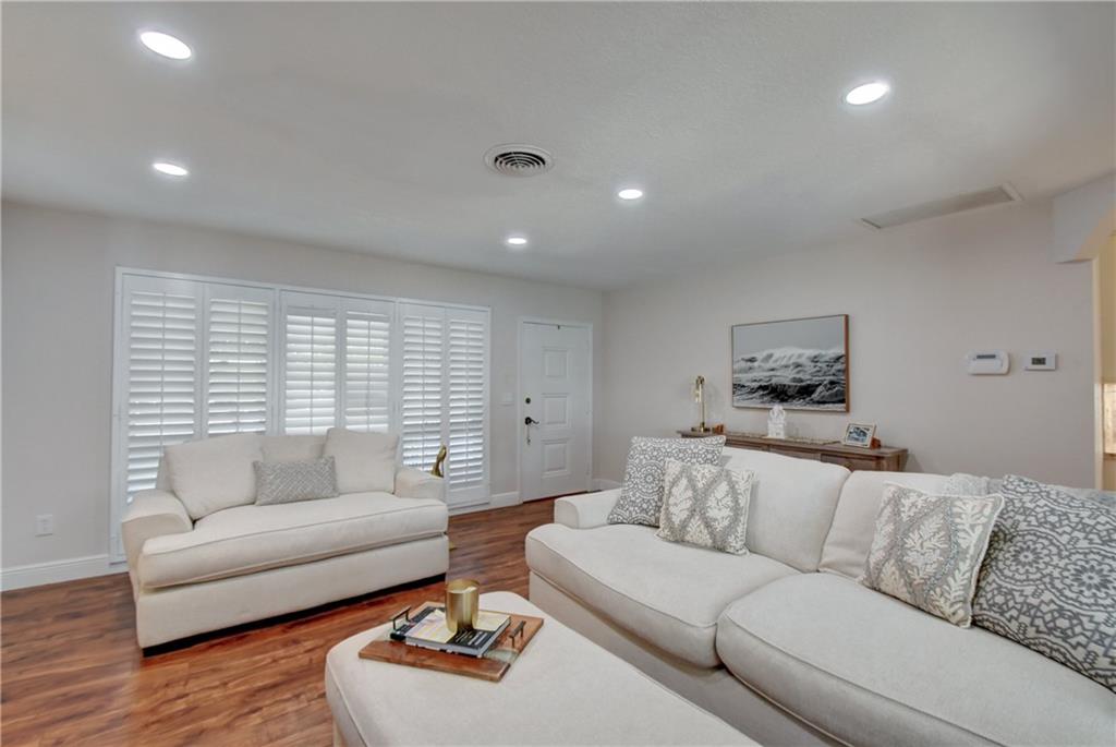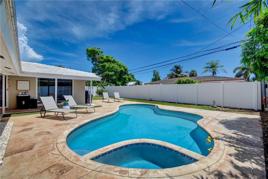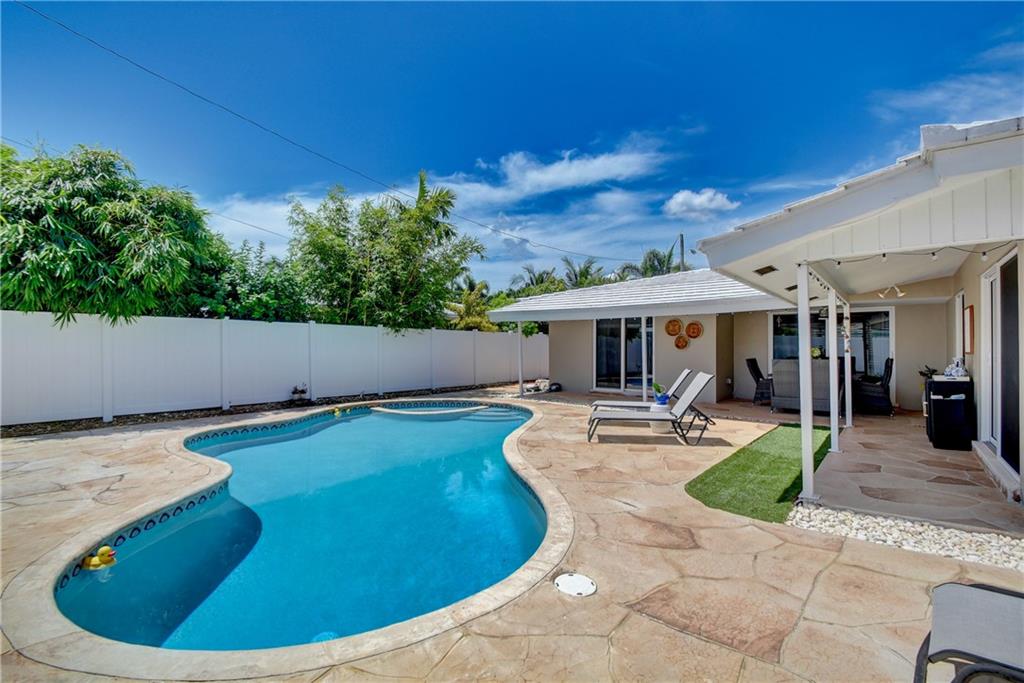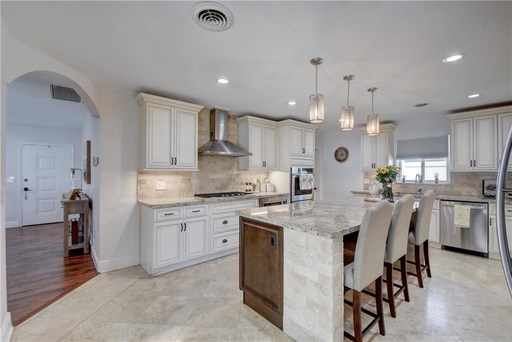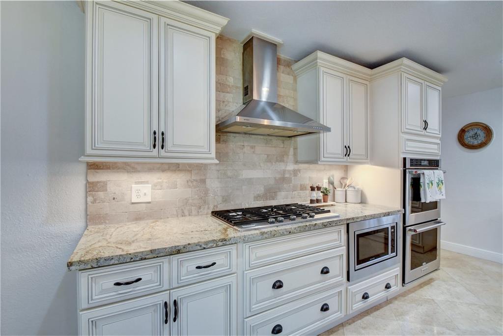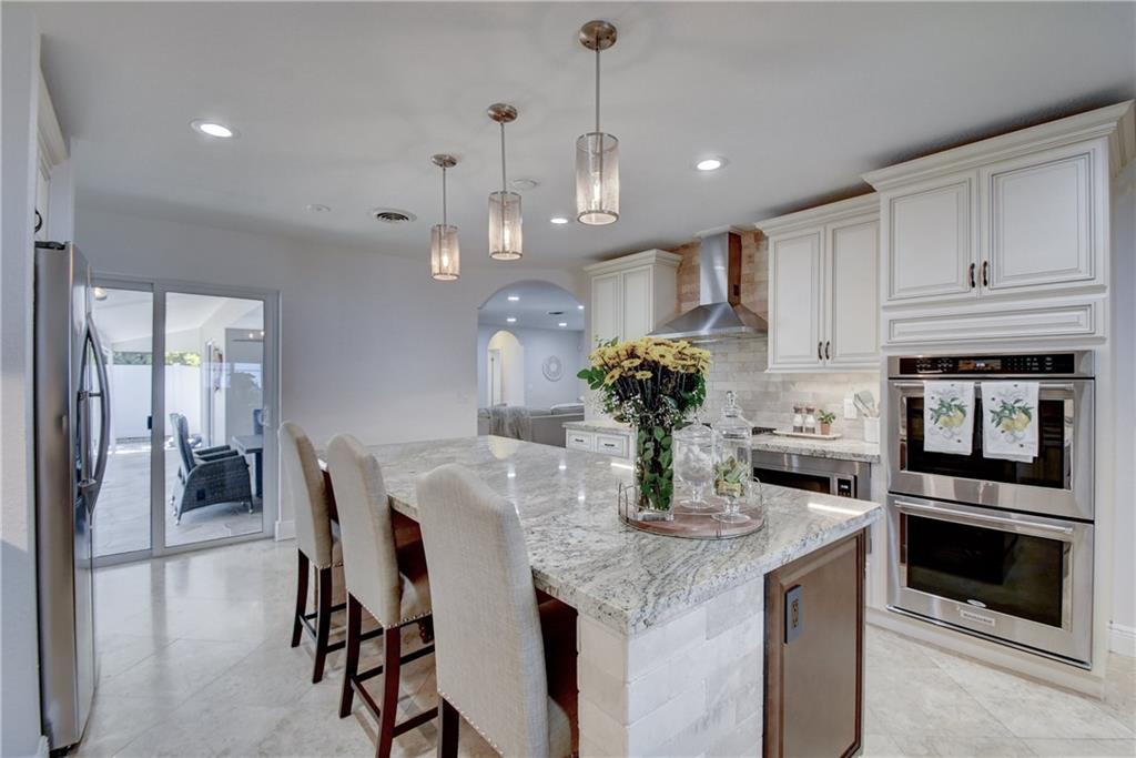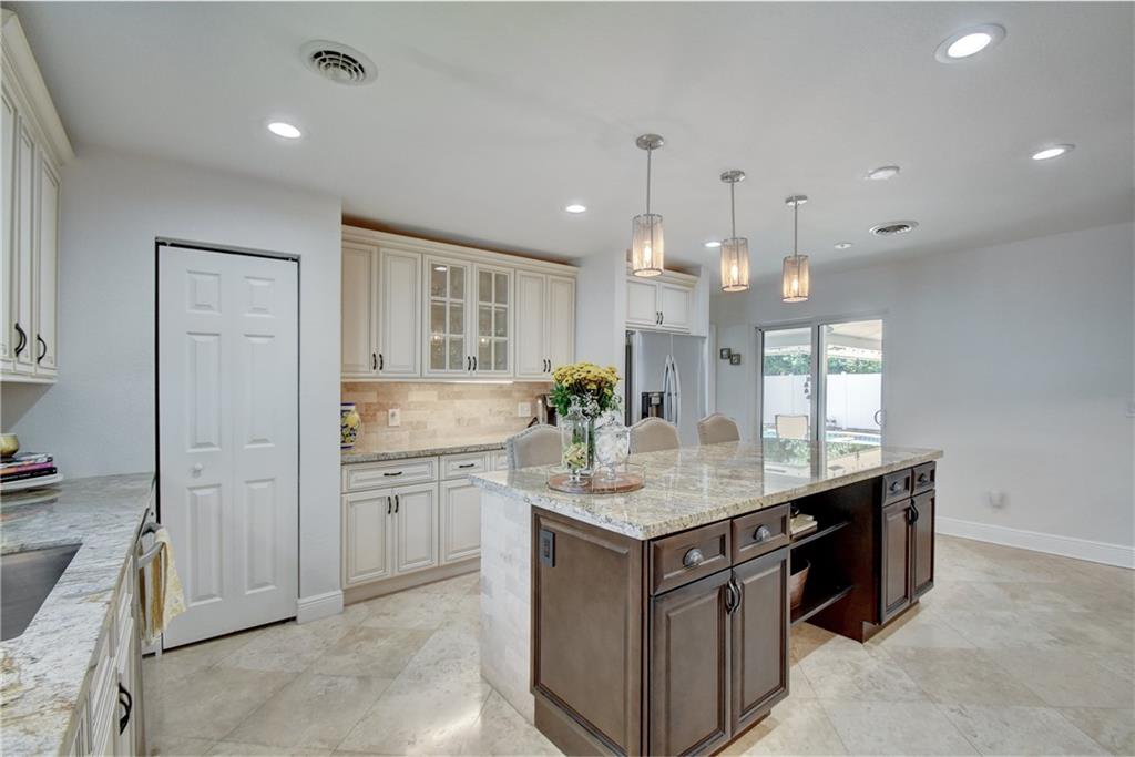 Fantastic home completely updated! Gourmet Chef's kitchen w/Forever Mark custom cabinets, granite countertops, professional grade Kitchen Aid double convection oven & KitchenAid Architect series II gas stove w/ upgraded gas service line & high powered exhaust hood. Large 96" island with under counter seating. Hurricane impact windows & doors. Dimmer lighting throughout house. Gorgeous baths with Crema Marfil marble counter tops & contemporary undermount sink. Dual flush elongated toilets. Custom plantation shutters. 2 car garage. Titan tankless water heater. Huge patio w/stamped concrete decking for entertaining with beautiful Nirvana heated pool with spa. New St Augustine grass through out front yard. Outdoor security motion sensor lights. Privacy PVC fence. Ready to move in!