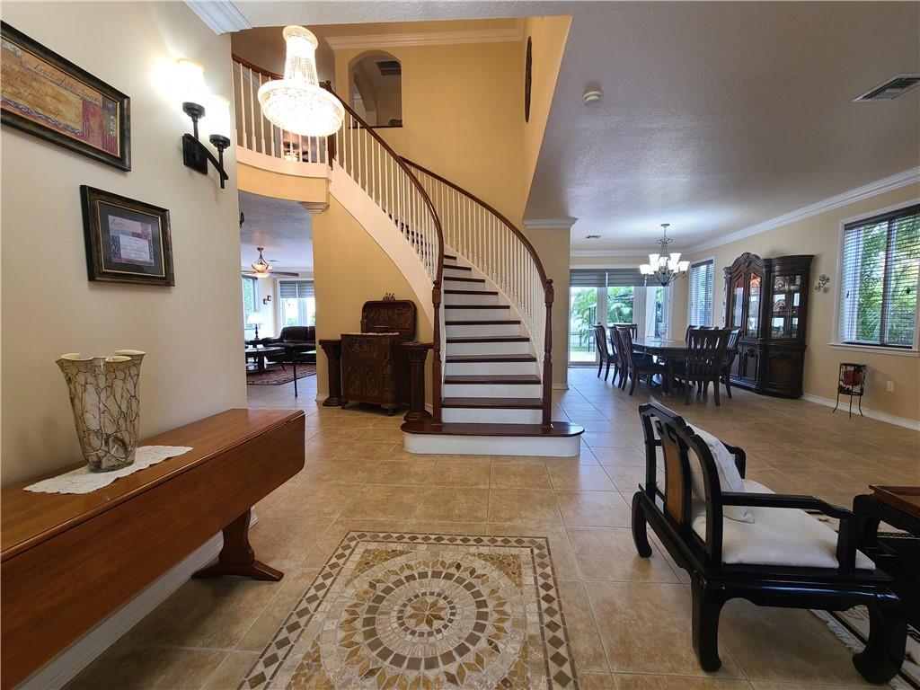Stunning Lakefront home in Gated Riviera Isles. This fully updated with impact windows and doors, crown molding, new LED lighting, upgraded flooring, and baseboards, upgraded solid wood kitchen cabinets with granite countertops and backsplash, custom lighting, new wood blinds, updated fans thru-out, Crystal entry chandelier and entry mosaic flr, upgraded french doors, central vac system thru-out, custom stained oak spiral staircase. Leading to an Oversize master on 2nd floor with 8 ft. double entry doors and on-suite as your office or retreat, updated bathrooms with his and her vanities, and built-in Bay-Window over tub. Open plan design large rooms and airy for your luxurious feel as you move about this magnificent home on the water. Call or Text NOW, Truly a MUST Have.