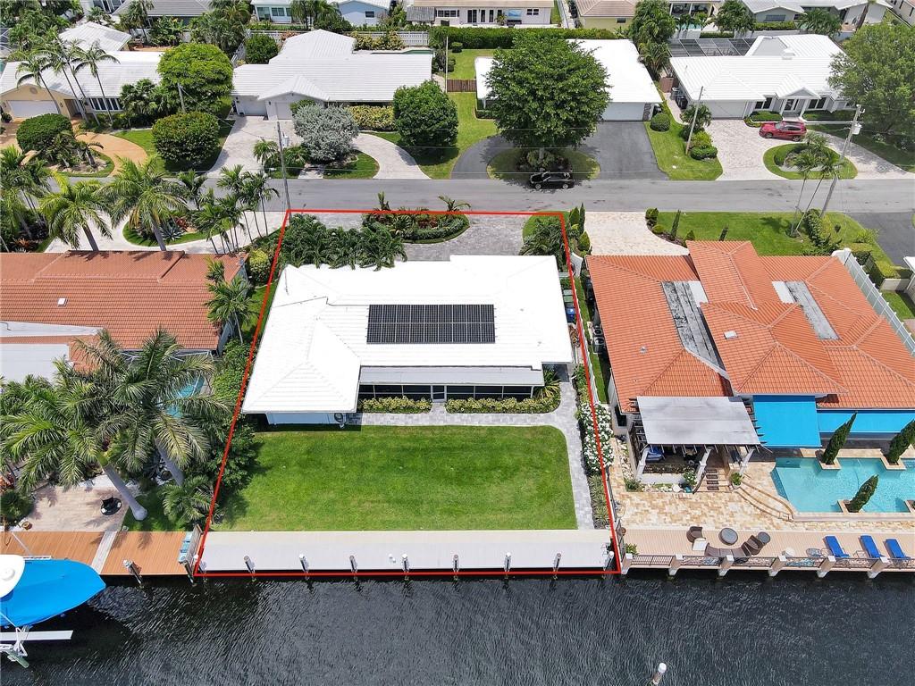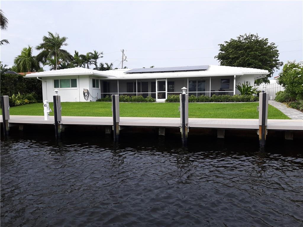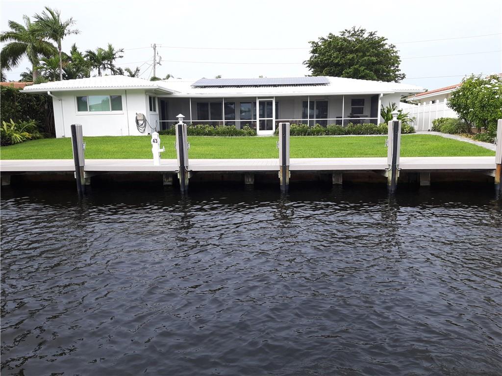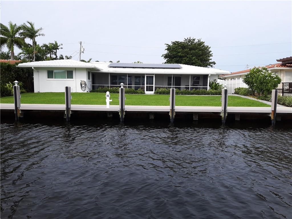 Exquisitely renovated, this beautiful 3/2 waterfront home is now available! Only 6 homes from the Intracoastal Waterway. Renovations include new flooring, cabinets, quartz countertops, newer A/C & water heater. High impact windows & doors. Great curb appeal with new driveway & ultra modern garage door, plus custom tropical landscaping that has been meticulously maintained. This home has a large 2 car garage & features beautiful 85' waterfront footage on a wide canal. Custom lighting throughout the home. Bright and open kitchen with new modern appliances. Solar panels on roof energy efficiency. Large, spacious enclosed patio with a superb water view. Perfect for entertaining or relaxing! Excellent location across from the Galt Ocean Mile, with shopping & retail across A1A. DON'T MISS THIS!