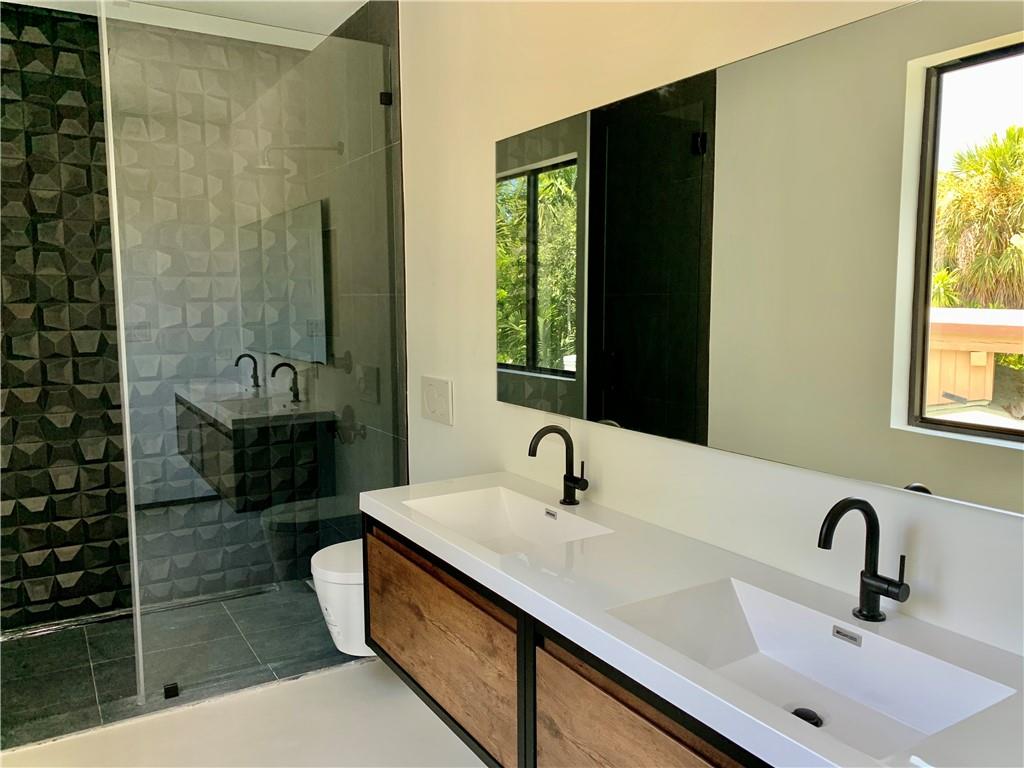 This ultra contemporary masterpiece in the heart of Rio Vista epitomizes the pinnacle of modern luxury living. Soaring ceilings & walls of impact glass from every room overlooking the lushly landscaped backyard with salt water pool, spa & large covered loggia fills the home with natural sunlight. Massive great room with custom Chef's kitchen featuring top of the line Thermador appliances, European cabinetry, porcelain counters, hidden walk in pantry & huge island. Stunning floating glass staircase leads to all 4 en-suite bedrooms with walk in closets, laundry room & breakfast bar. Polycrete floors throughout. 3 Zone A/C. Prewired for home automation. Ready for occupancy December 2020. See attached floorplans and Features.