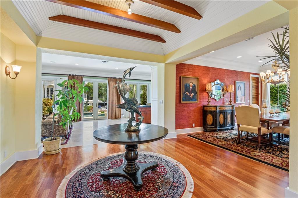 Timeless custom Coastal Colonial waterfront home in Fort Lauderdale’s sought-after Rio Vista Isles. Designed by Robert Tuthill, this immaculate 3 bed, 3 bath, 2 half bath is a dream home. Located on 75’ of deep water, minutes to the ocean. Floorplan includes office/library, laundry room, loft & huge private 4th room off the upstairs master suite with expansive views from covered balcony overlooking the pool & waterway. Gourmet kitchen, gas range, butler’s pantry, Subzero, impact glass. Gorgeous planked Brazilian mahogany wood flooring throughout, and curved wooden staircase to second floor. Compound crown molding, plantation shutters, Hunter Douglas shades add distinct touches. Water views surround heated pool & outdoor patio.Zoned speaker system.Minutes to Las Olas & Ft. Lauderdale Beach.