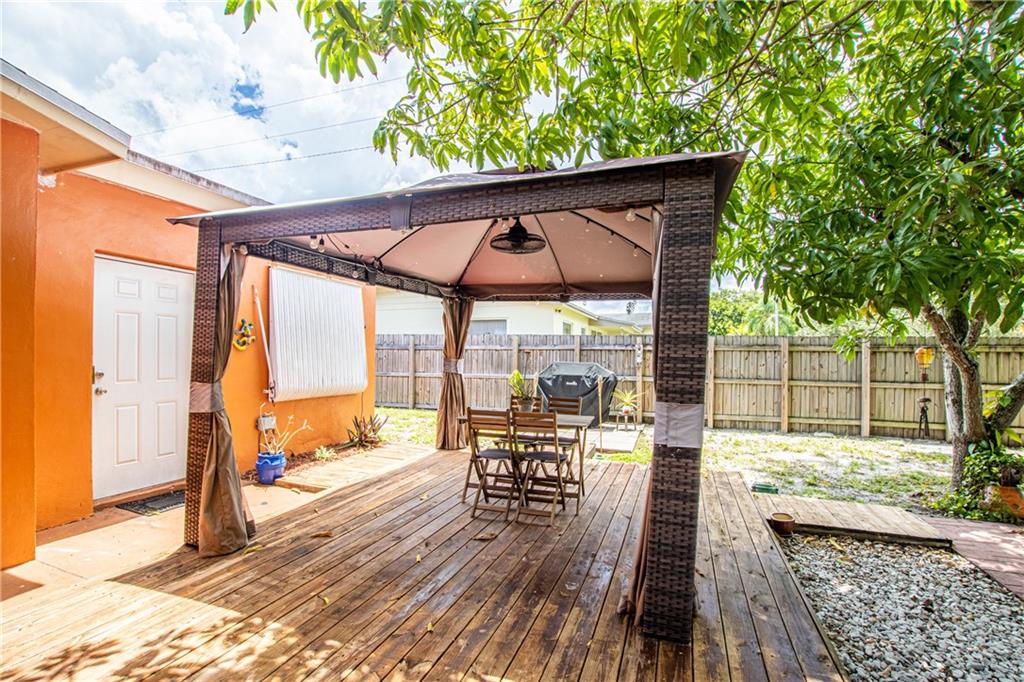 Recently remodeled 4 bedroom 2 bathroom single family home on a nice sized corner lot! Roof is 5 years old and still under warranty, and the AC was installed in 2016. Plenty of closet and storage spaces throughout. This home features an abundant amount of living space with a dining room and spacious eat in kitchen and large living room/family room. Kitchen and bathrooms were recently updated and there is also a full sized laundry room and home office. The fenced yard features several mango trees, a dragon fruit tree, two stained decks, and a concrete slab for a grill or outside patio furniture. There is also a 10 X 16 shed Superior brand shed for additional storage space. No homeowners association