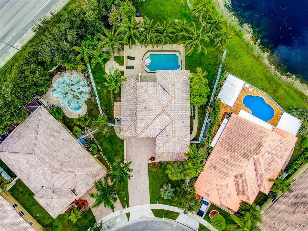 SPACIOUS & RENOVATED WATERFRONT POOL HOME WITH 5BED, DEN/OFFICE, SMALL STUDY AREA & 3.5BATH IN A 24HRS, GUARD GATED COMMUNITY. EXCELLENT CONDITION. NEW & UPGRADED KITCHEN WITH 42" CABINETS, CENTER ISLAND & STONE COUNTERTOPS. 2 RENOVATED BATHROOMS, NEW PVC PLUMBING, WOOD FLOORS THROUGHOUT THE ENTIRE HOME & STAIRCASE, CUSTOM FRONT DOOR, ACCORDION SHUTTERS, INTERCOM, MASTER BEDROOM W/SITTING AREA AND BALCONY. 1BED/BATH + OFFICE DOWNSTAIRS. SUPER FANTASTIC, OVERSIZED FENCED LOT W/POOL & CANAL ACCESS TO A WILD PRESERVE/LAGOON. FRUIT TREES & DRIVEWAY TO FIT 6 CARS!... VERY NICE COMMUNITY & EXCELLENT LOCATION.