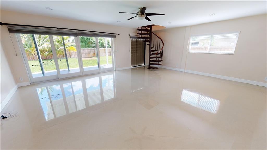 WOW! This beauty has been renovated from top to bottom located in a quiet community of Hollywood. This home features a bright open floor plan with over 2300 sq ft of living area with marble tile and dark wood floors. 3 bedrooms in which 2 master suites (1 downstairs) 3 bathrooms, split living/family room, dining, along with 1 car garage and spacious driveway. 2nd floor master has vaulted ceiling, deck, full bath and walk in custom closet. Dual a/c units. This home has been meticulously maintained including impact windows/doors, accordion shutters, granite counters, newer appliances, washer/dryer, AC and spacious one car garage. Fenced, private backyard and landscaped front yard. Too many added extras to list. Matterport Tour Available. This beauty is ready for its new owners!