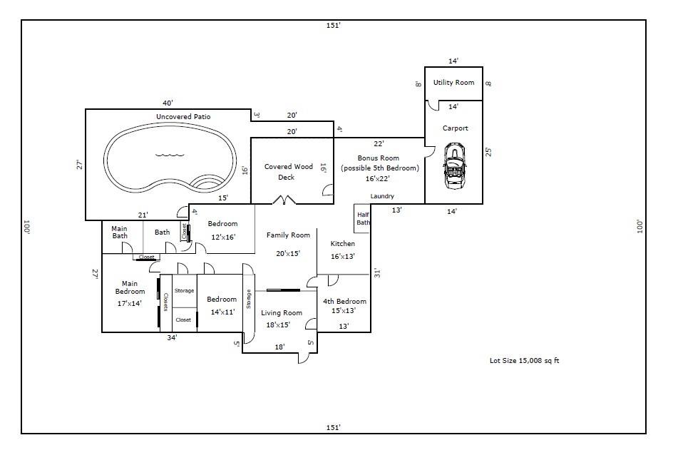Large house on an enormous lot with a pool and quick access to I95, downtown and the beach. This house features original Dade County pine and many other unique qualities. With extra living space, if needed, you could create a fifth bedroom, office or guest suite... the possibilities are endless! Kitchen has quartz countertops. Large bedrooms and plenty of closet space throughout the house. Bedroom closets are cedar lined. 16'x20' wood deck covered by an awning makes a fantastic spot to enjoy your time next to the pool. Over 15,000 sq ft lot is large enough to sub-divide, build a separate cottage or enjoy it all for yourself. Carport could easily be converted to a garage. Electricity updated in 2017. Tile roof was installed in 2004. NOT in a flood zone. Scroll through pics for a floorplan
