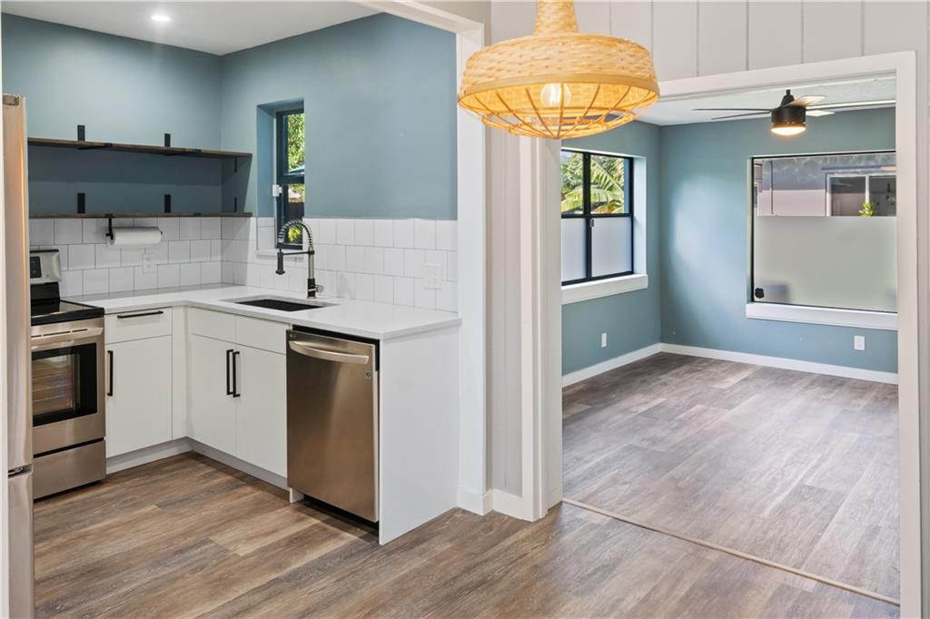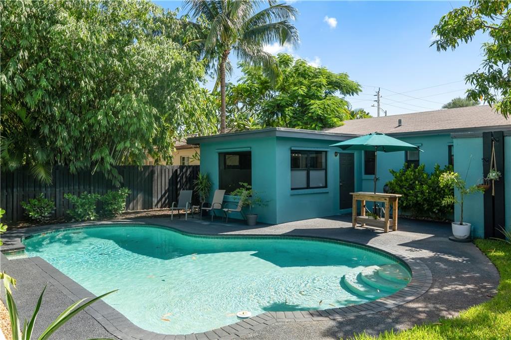 Gorgeous property consisting of two buildings!! Front house is an ENTIRELY REDONE 1 bed 1 bath with den or 2nd bedroom. UPGRADED kitchen has quartz countertop + stainless steel appliances. Cute remodeled masterbath with dual sinks. Guest house in back is partially redone, PERFECT investment or Airbnb property, can also be used as an inlaw suite! Newer kitchen with breakfast nook. Tile and laminate flooring throughout both units. Laundry room, shed, and shutters included. Resurfaced driveway fits up to 5 spots. It gets better! Enjoy lounging in the property's patio + pool all year long. This URBAN OASIS is in a central Fort Lauderdale area, less than 5 minutes away from sunrise blvd, near Galleria Mall and tons of restaurants & shopping centers, 10 minute drive from beach!