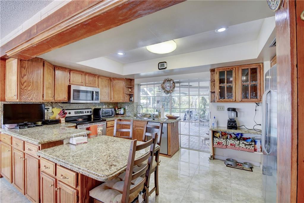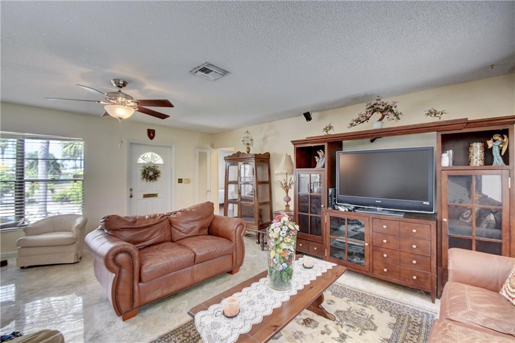 Beautiful residential area of Cypress Island Estate. Spacious home with three bedrooms and two bathrooms. Situated on a large corner lot with 28 feet of waterfront. Featuring porcelain tile floors in all of the living areas with wood floors in all of the bedrooms. Spacious kitchen with breakfast bar, granite countertops, with a view of the pool. Master bedroom with a large master bath, double sinks, separate tub and shower, and a walk-in closet. Two car garage, circular driveway, solar heated pool complete with fenced backyard.