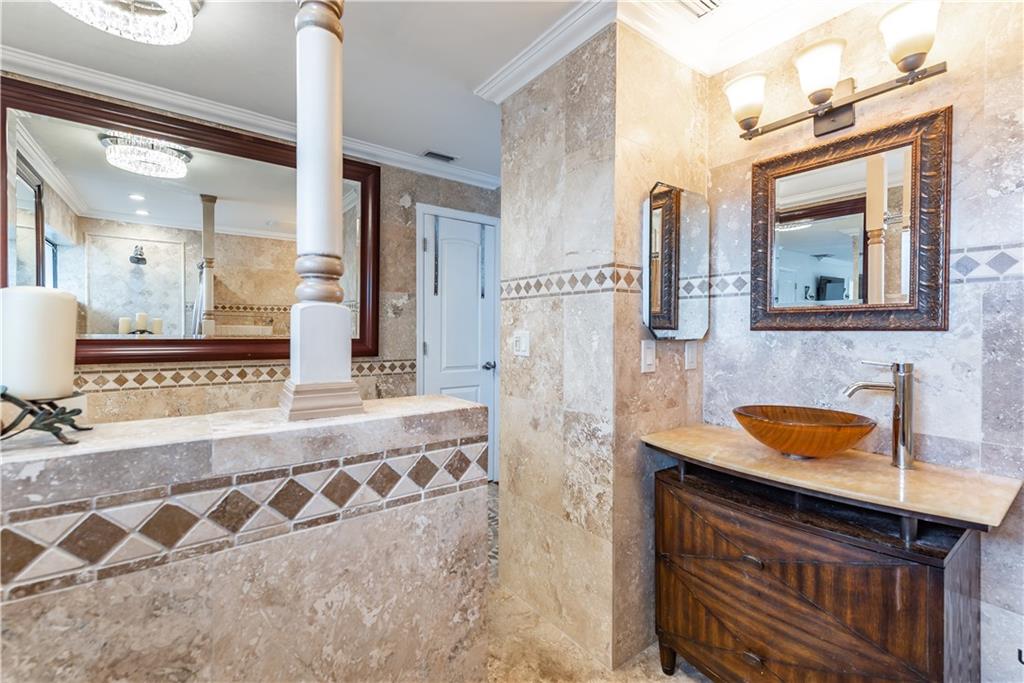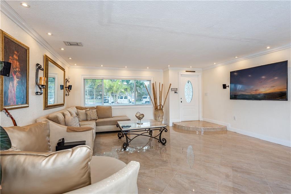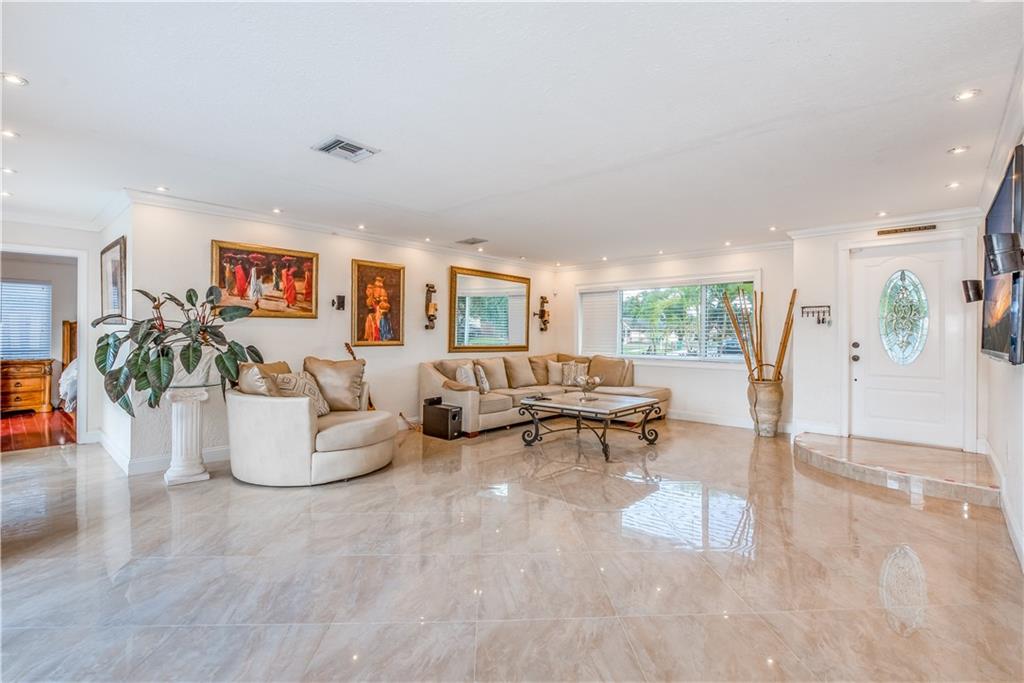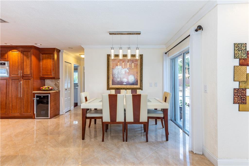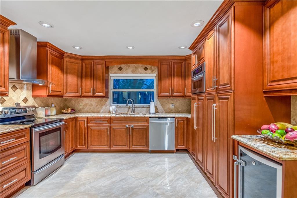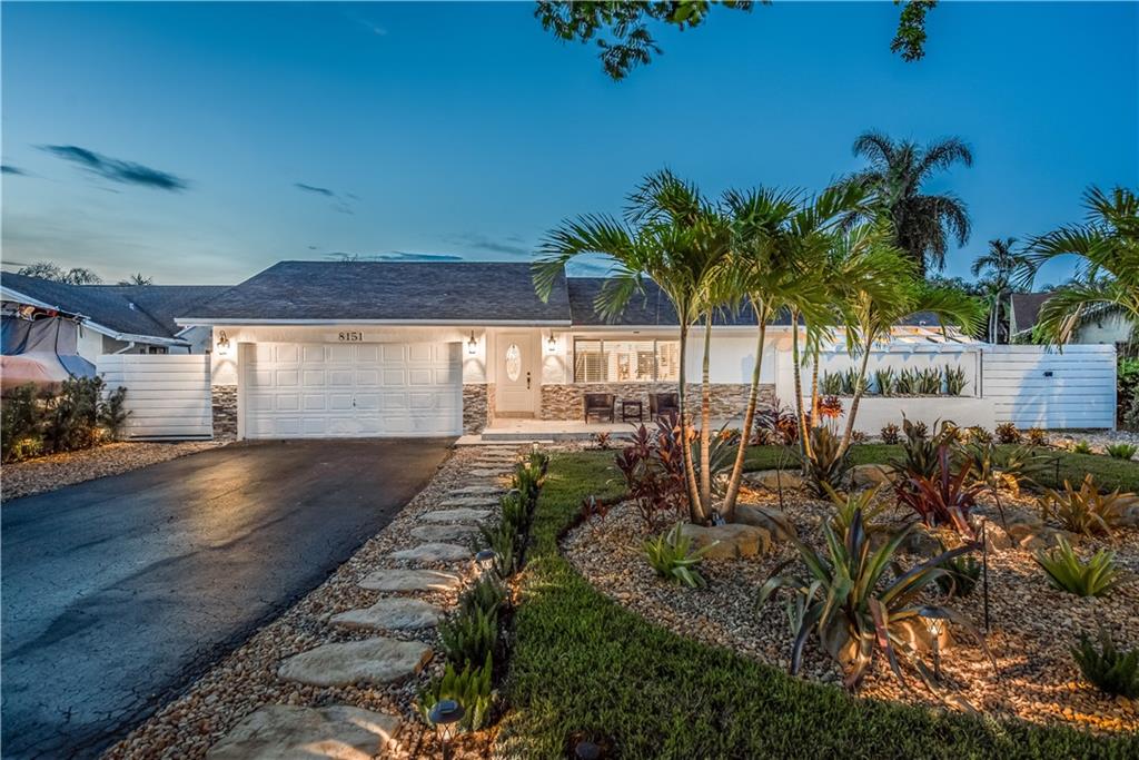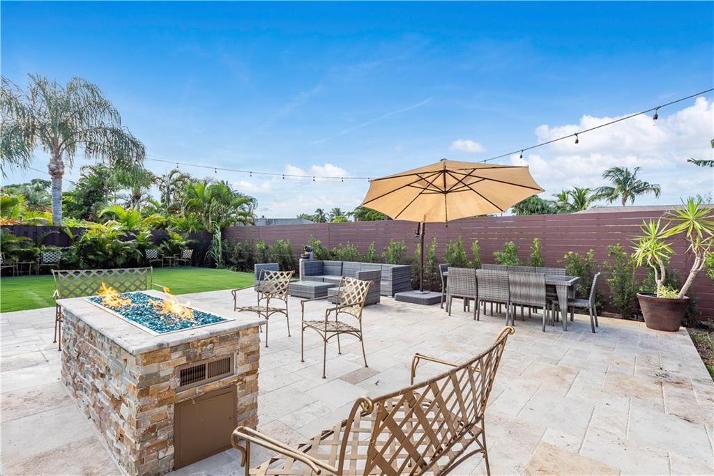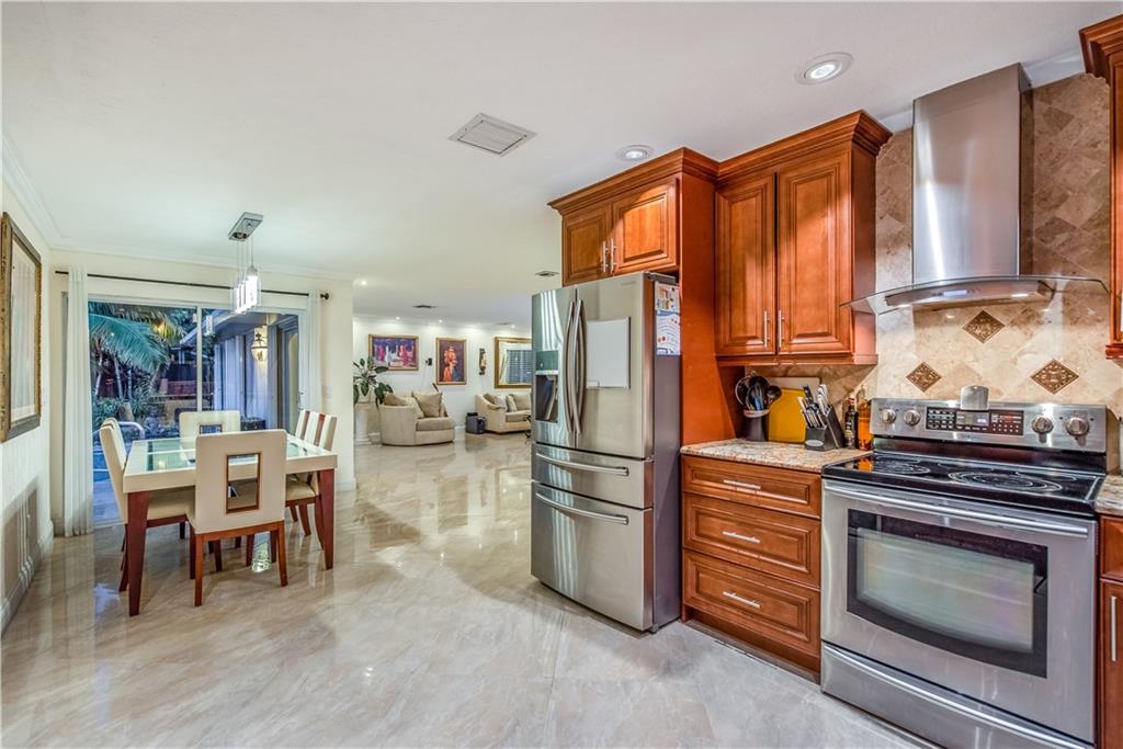 Floor Plan: 3/2 Open concept with slip floor plan for max privacy Flooring: Large porcelain tile throughout living area and Italian cherry wood in bedrooms Kitchen: The custom gourmet kitchen boast designer quality Italian wood cabinets with soft close feature, granite counter tops and state of the art stainless steel appliances Baths: Exotic floor to ceiling tiles in all bathrooms amazing craftsmanship Master bed His and hers walking closets Outdoors: True Oasis perfect for entertaining boosts lush landscaping and lighting throughout, lighted pool, extra-large patio, custom fireplace Cooling: Energy efficient AC 2 years old, thankless water heater. Parking: 2 driveways; huge space able to house an RV or Boat Security: Accordion shutters, motion lighting, camera & alarm system